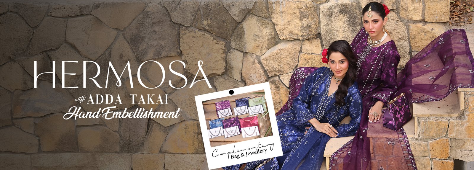 ₨ 9,600Semi Stitched Luxury Collection & Printed Silk Inner With ADDA TAKAI Hand Embellishment Shirt