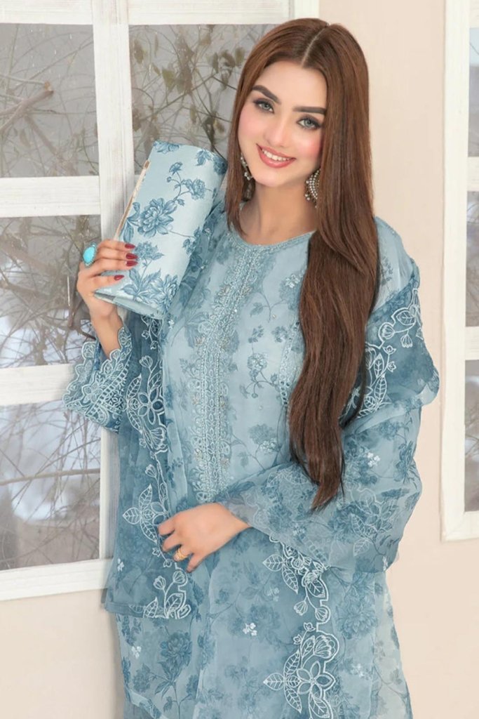 Sadabahar Vol-2 Stitched Luxury Formal EmbroideredOrganza With Fancy Embroidered Cutwork Dupatta SAD-003