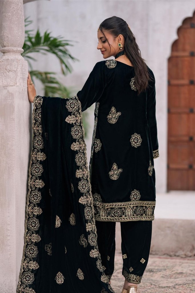 Unstitched Dyed Embroidered Velvet TrouserNOTE: