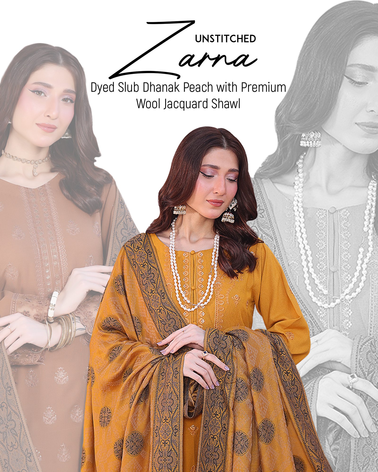 ₨ 6,600Unstitched Dyed Embroidered Slub Dhanak Peach Front