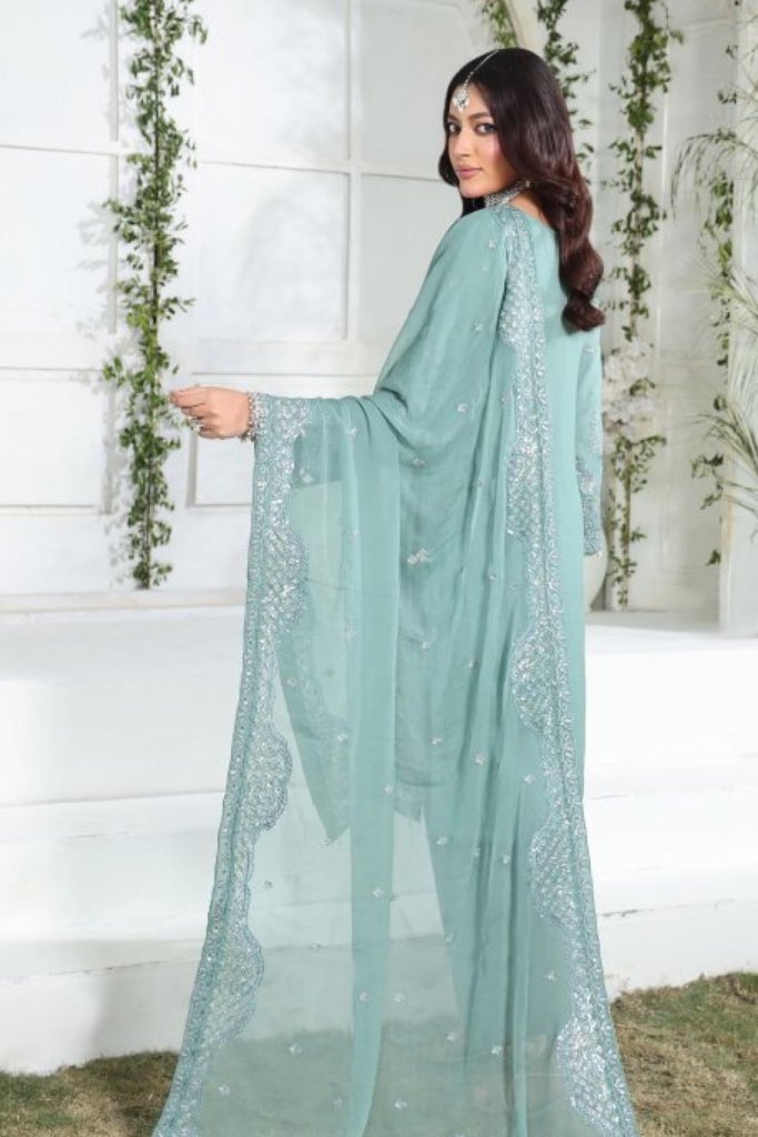 ₨ 8,100Semi Stitched Embroidered Luxury Chiffon Shirt With Exclusive Hand Embellishment Front!