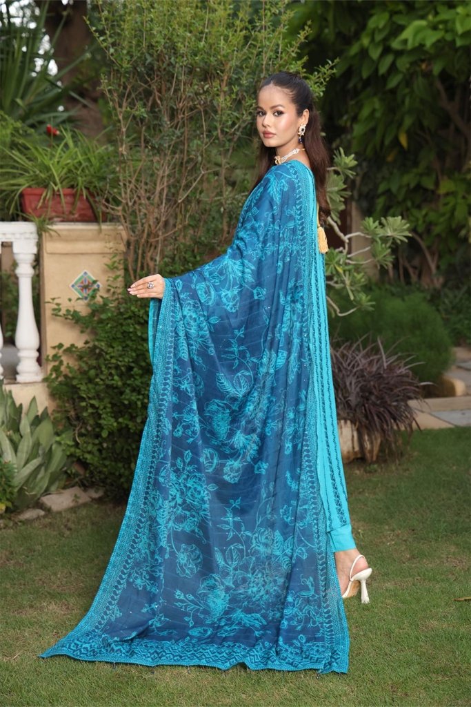 Mizka Unstitched dyed Slub Shirt With All Overe Schiffli With Sequins MONARCH Duppata MIZ-004