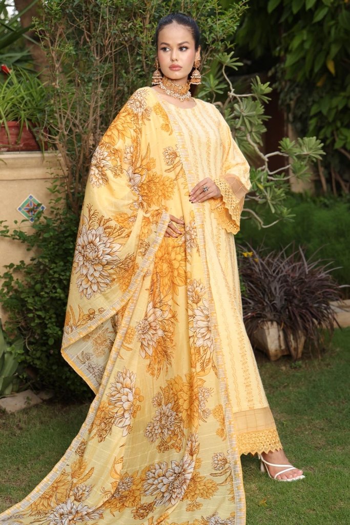 Mizka Unstitched dyed Slub Shirt With All Overe Schiffli With Sequins MONARCH Duppata MIZ-007