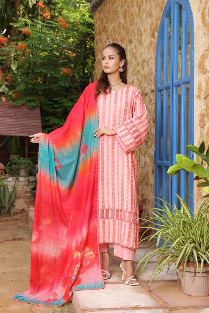 ₨ 4,275 – ₨ 5,625Unstitched dyed Slub Shirt With All Overe Schiffli Shirt