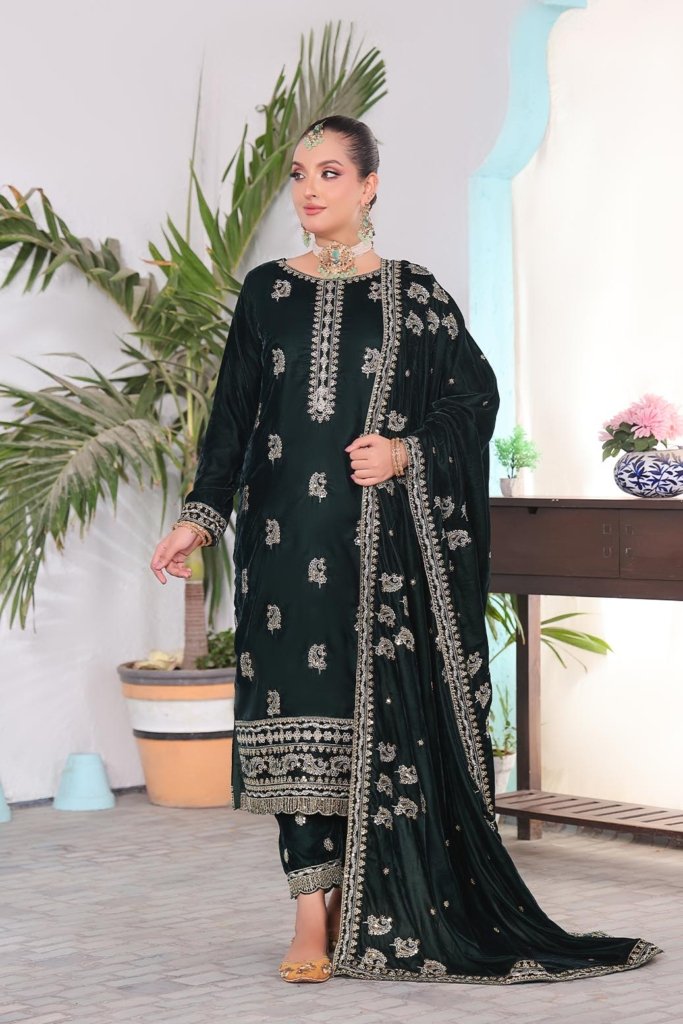 Unstitched Dyed Embroidered Velvet Cut Daman Eddition Shirt