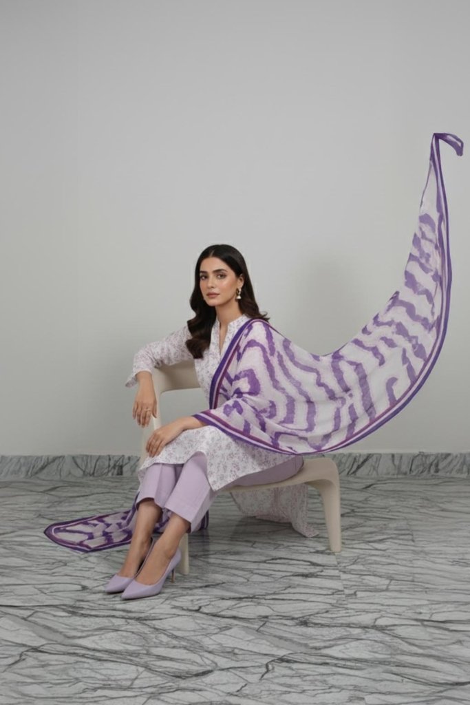 Digital Printed Lawn Voil CHEQUE DIAMOND Duppata