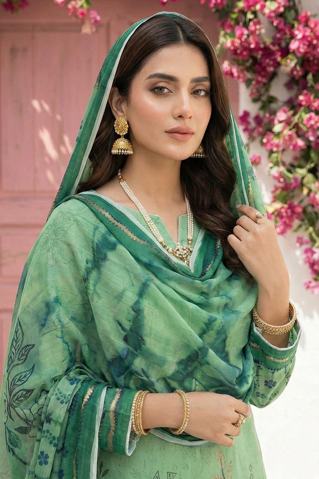 2 Side Scalloped Printed Voil Duppata