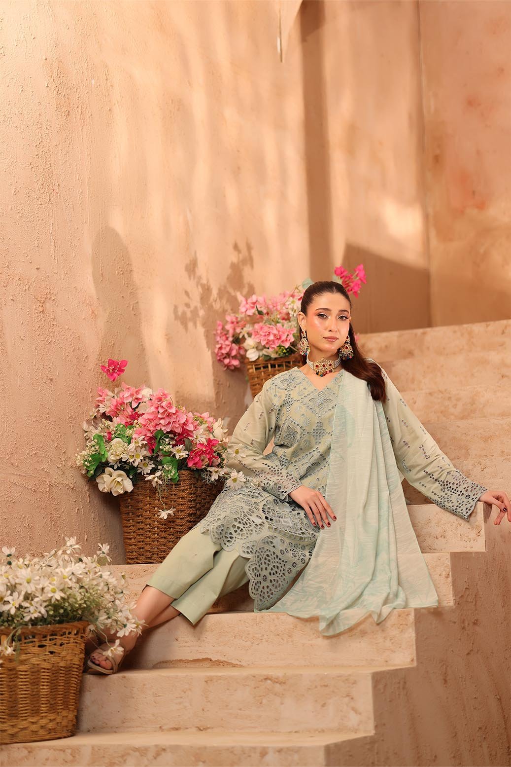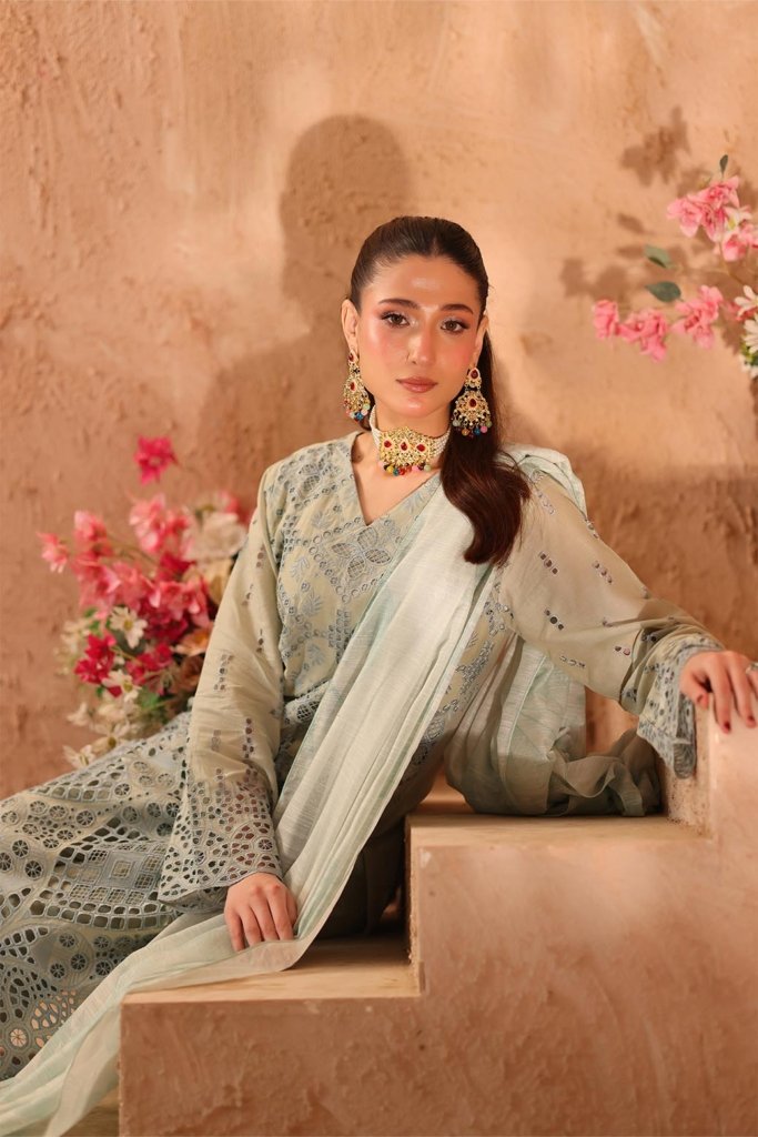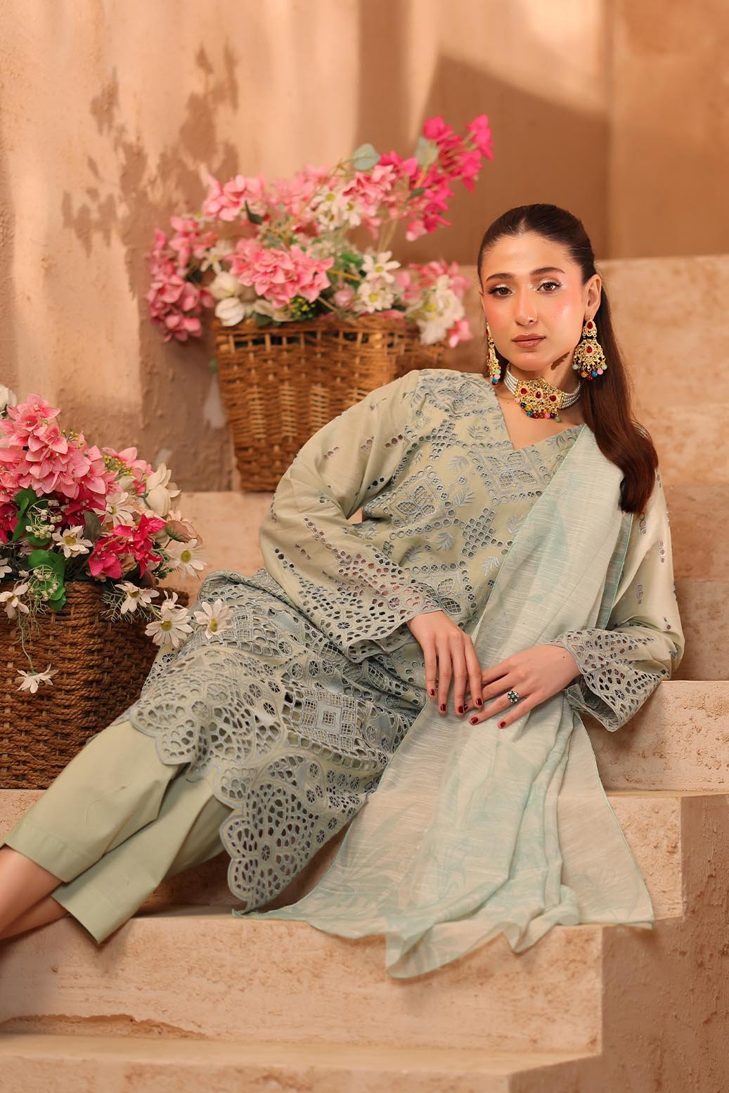 Unstitched Dyed 4 Piece Lawn Big Boring Schiffli Collection With Innar Included Front
