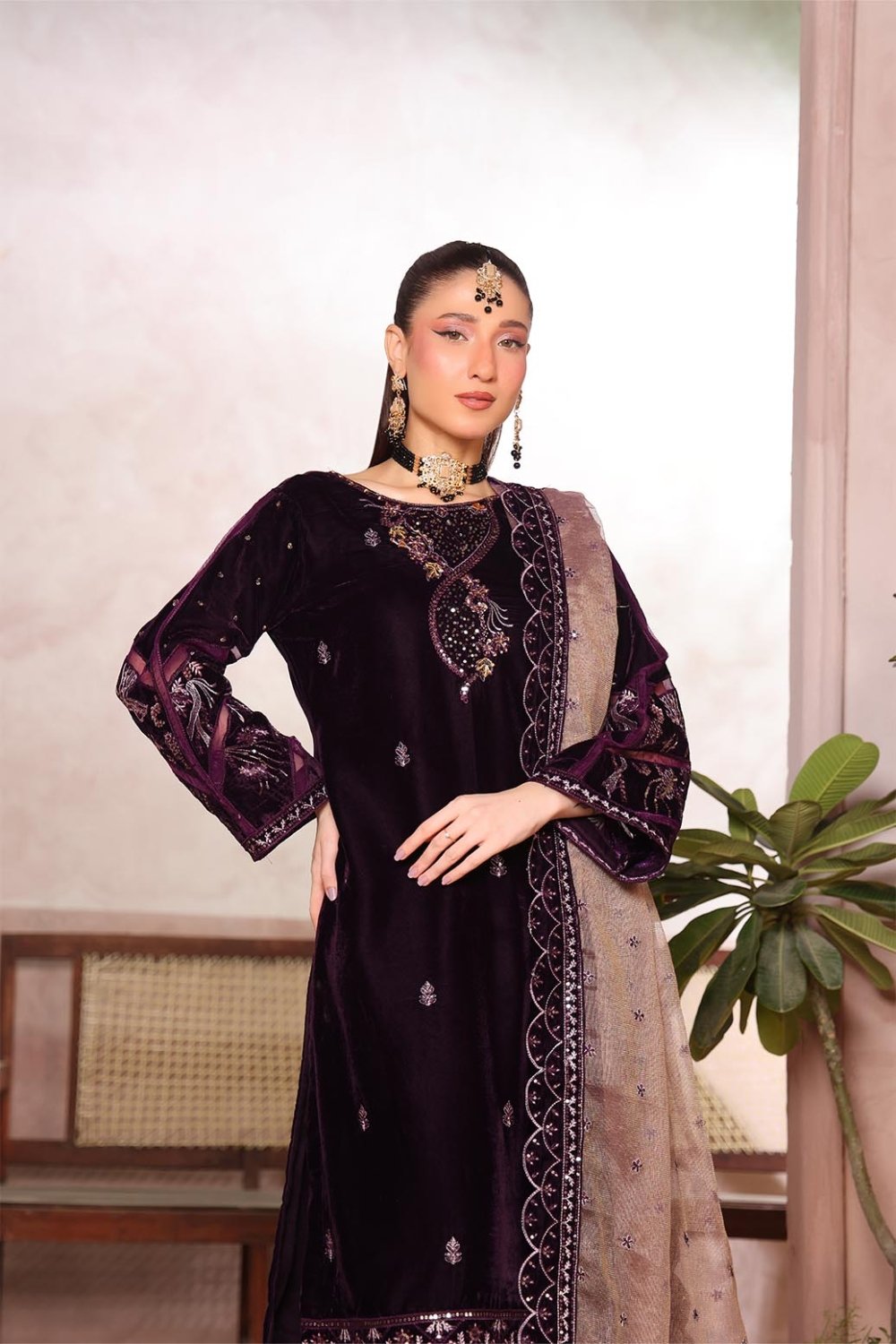 Unstitched Dyed Embroidered Velvet Trouser