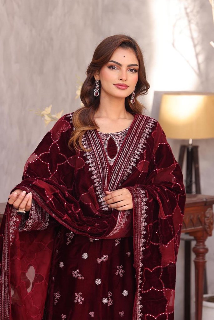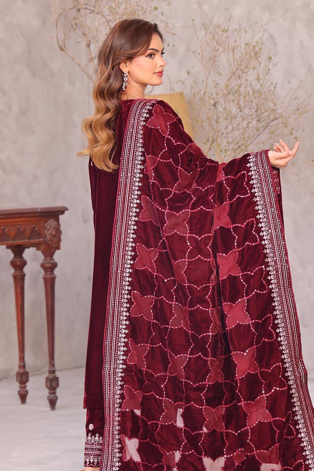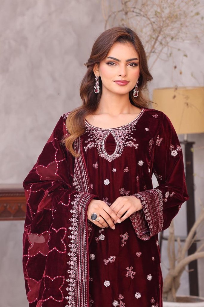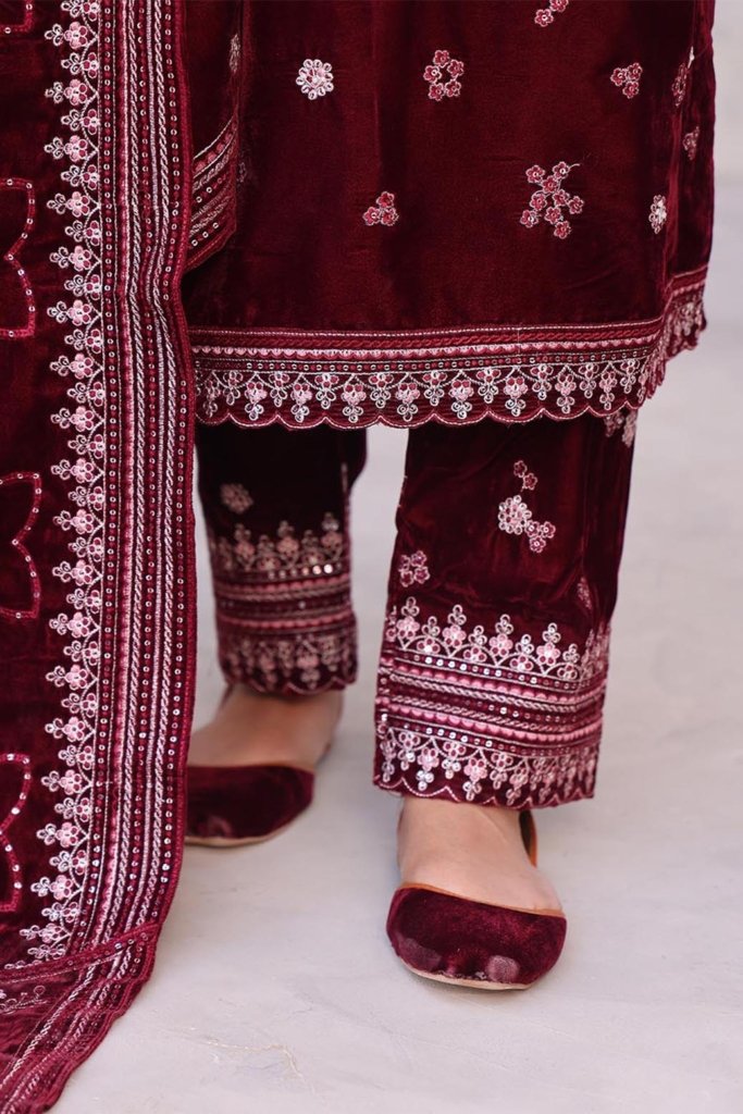 Unstitched Dyed Embroidered Velvet Trouser
