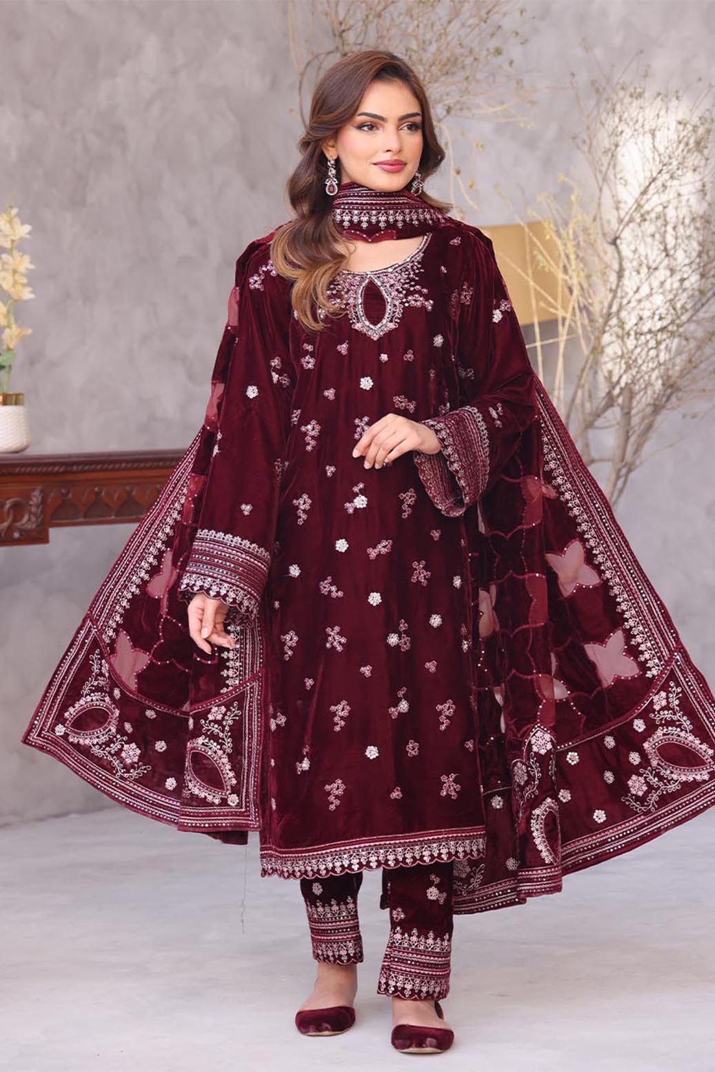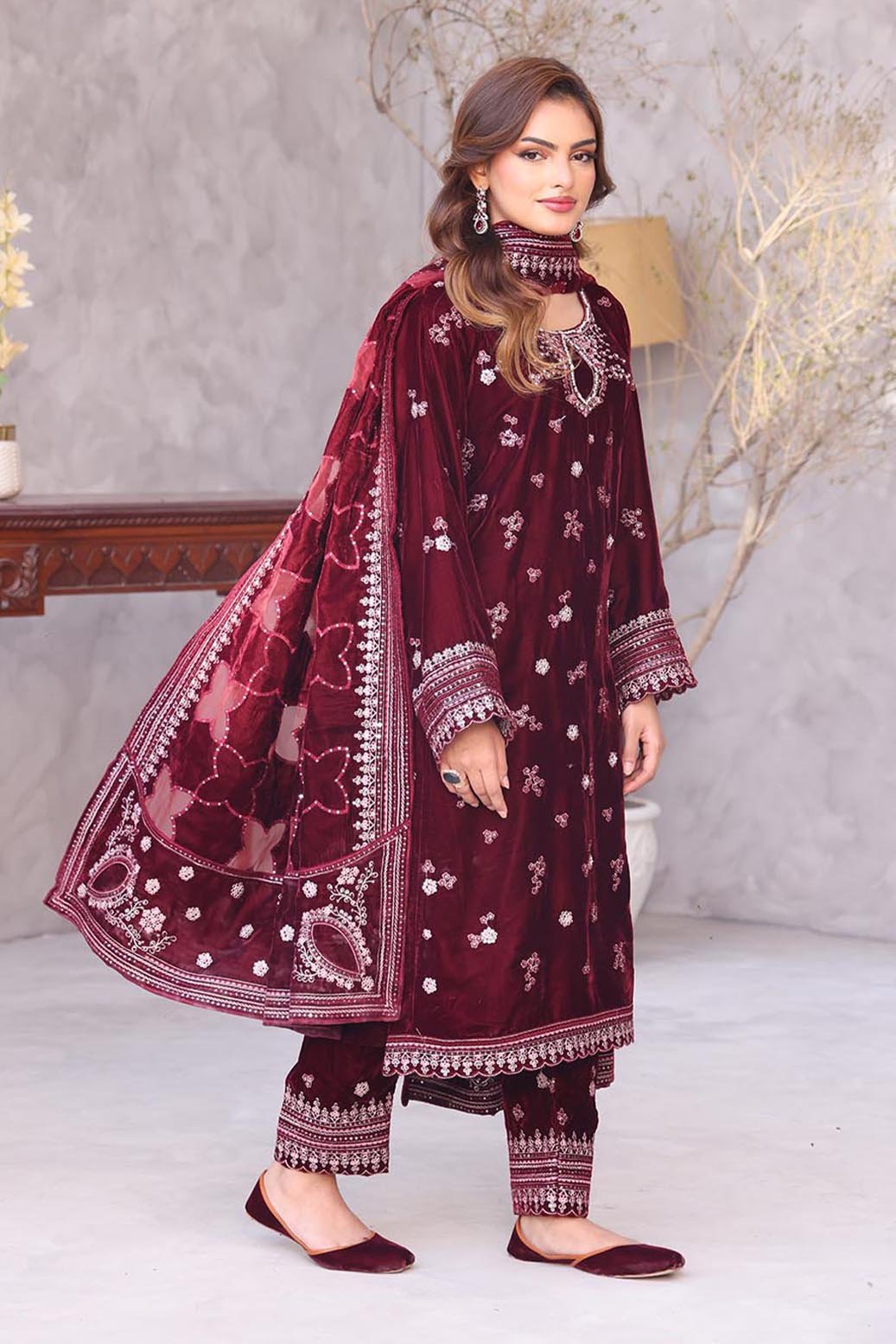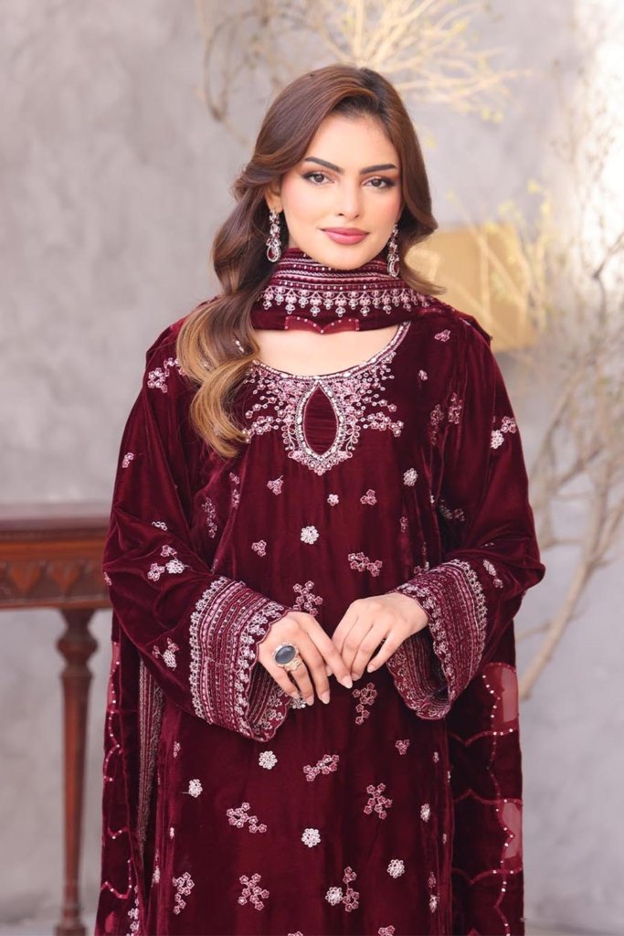 Unstitched Dyed Embroidered Velvet Trouser