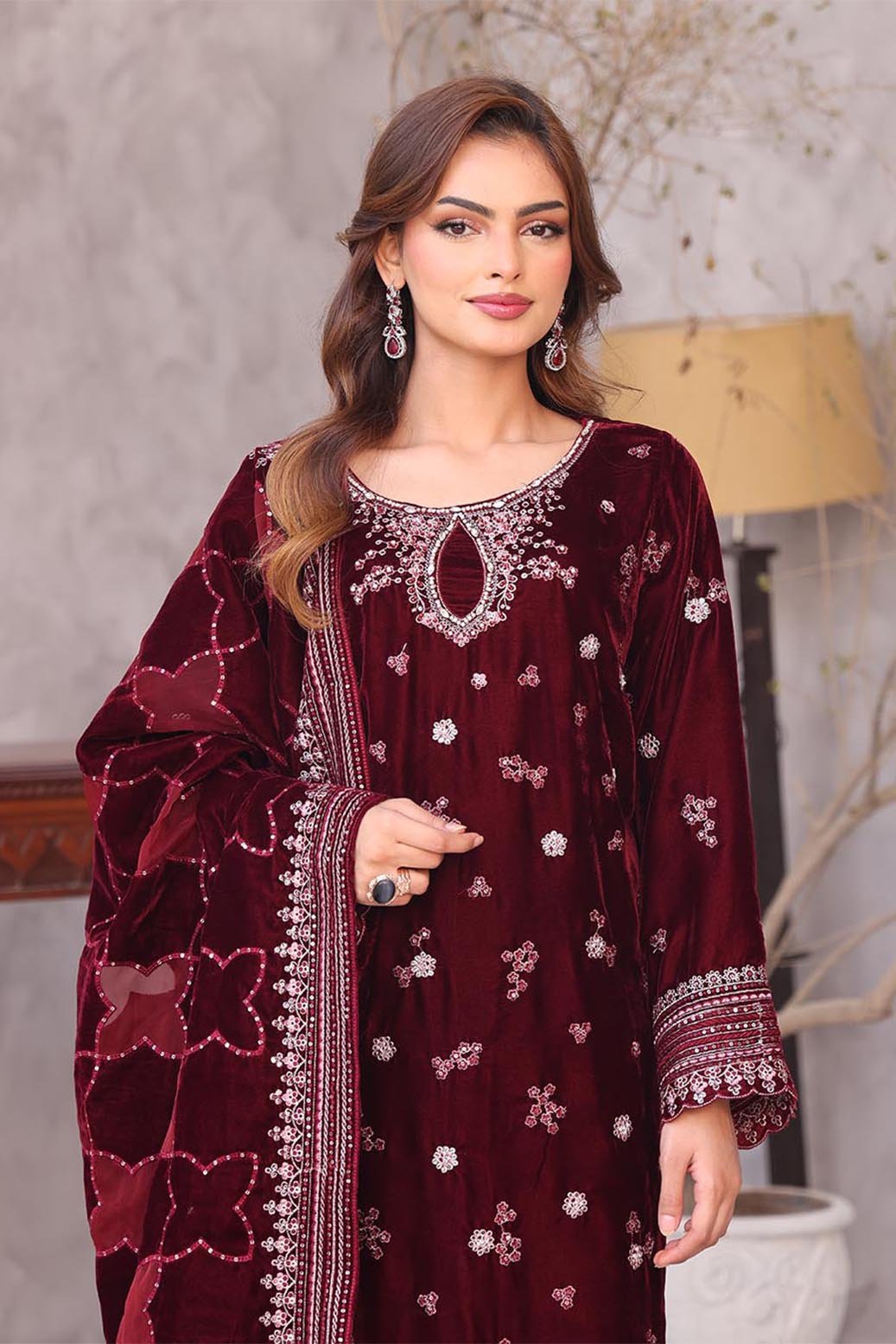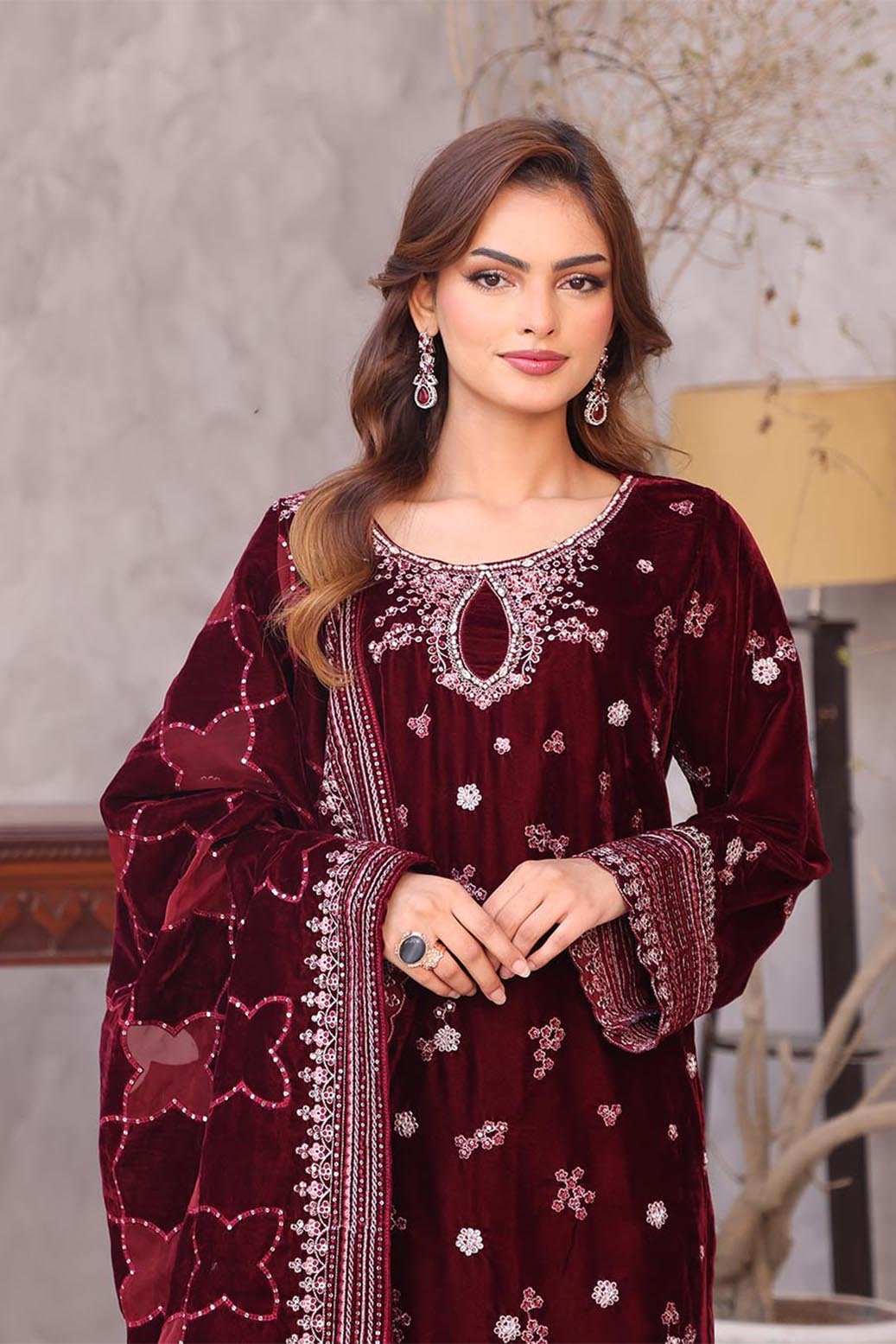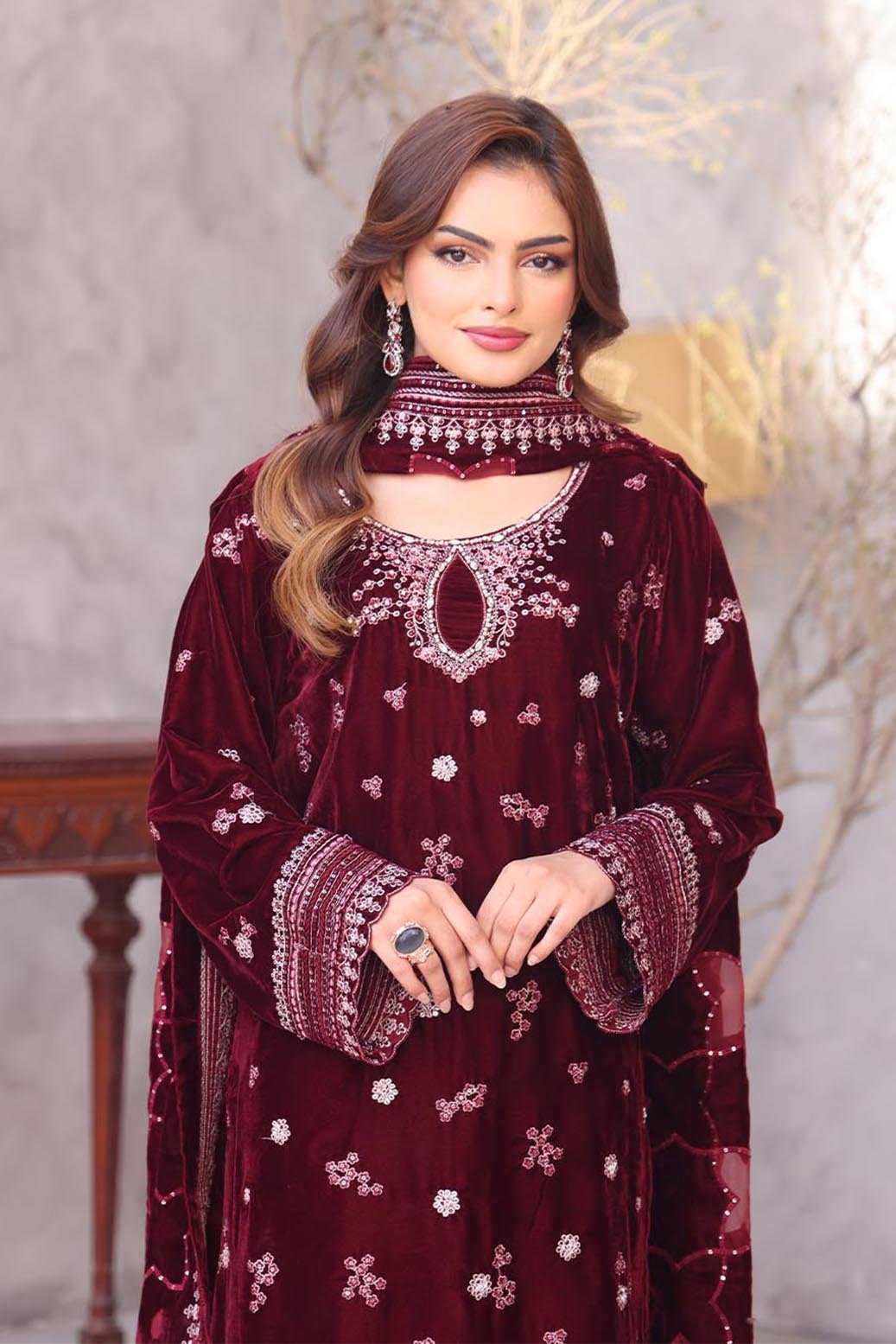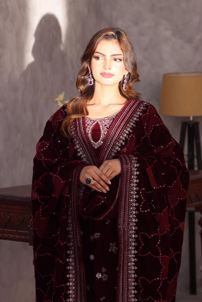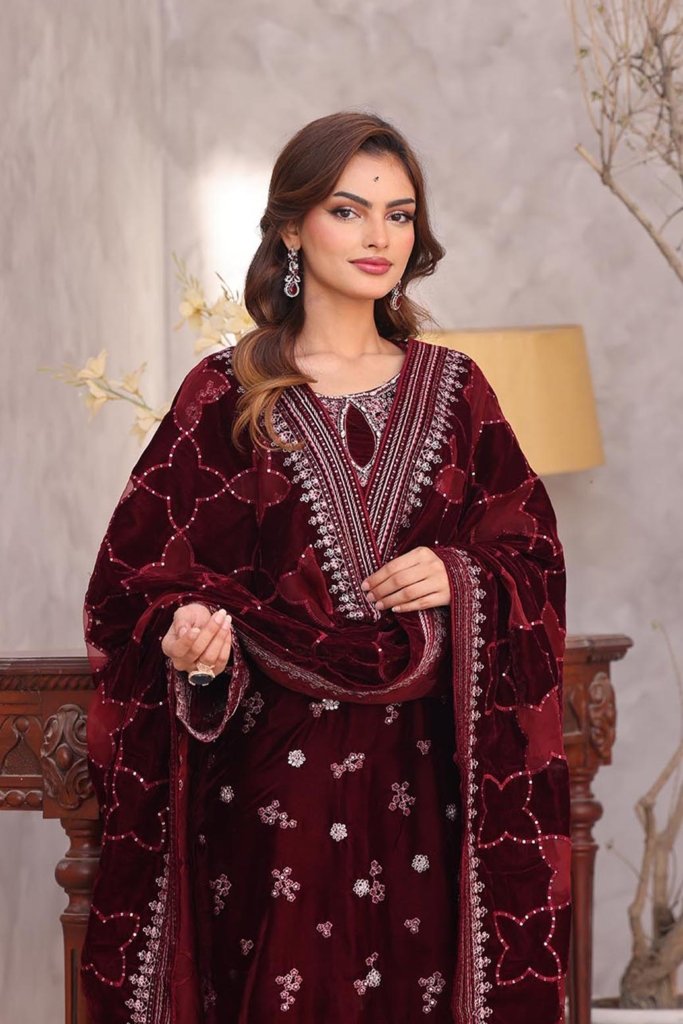 Unstitched Dyed Embroidered Velvet Shirt