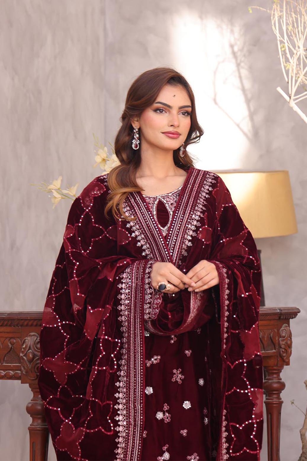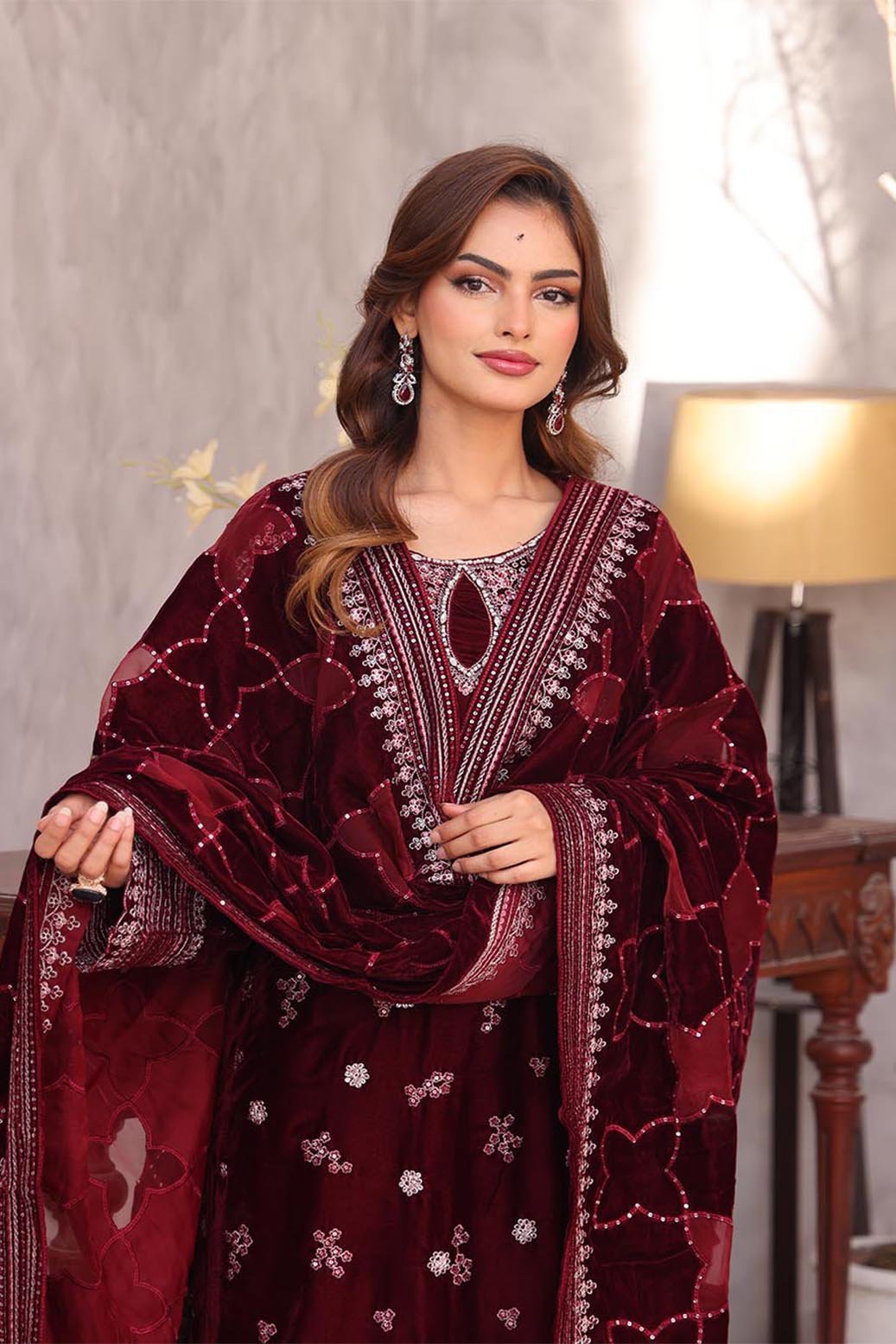 Fancy Embroidered Velvet Applique Shawl