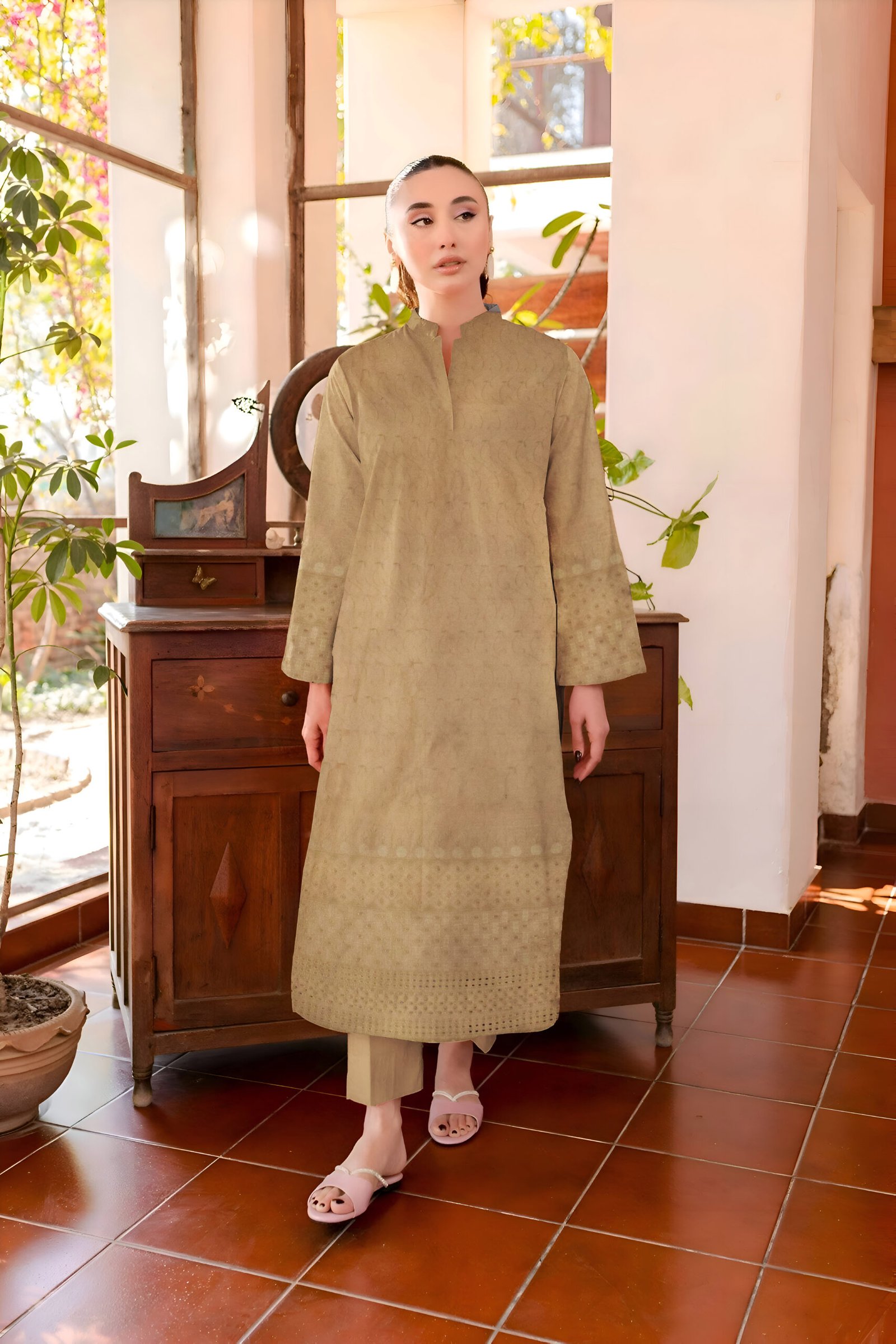 Unstitched Dyed Schiffli Embroidered Cambric Front