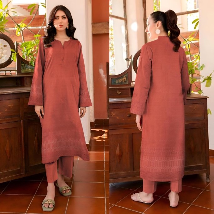 Unstitched Dyed Schiffli Embroidered Cambric Front