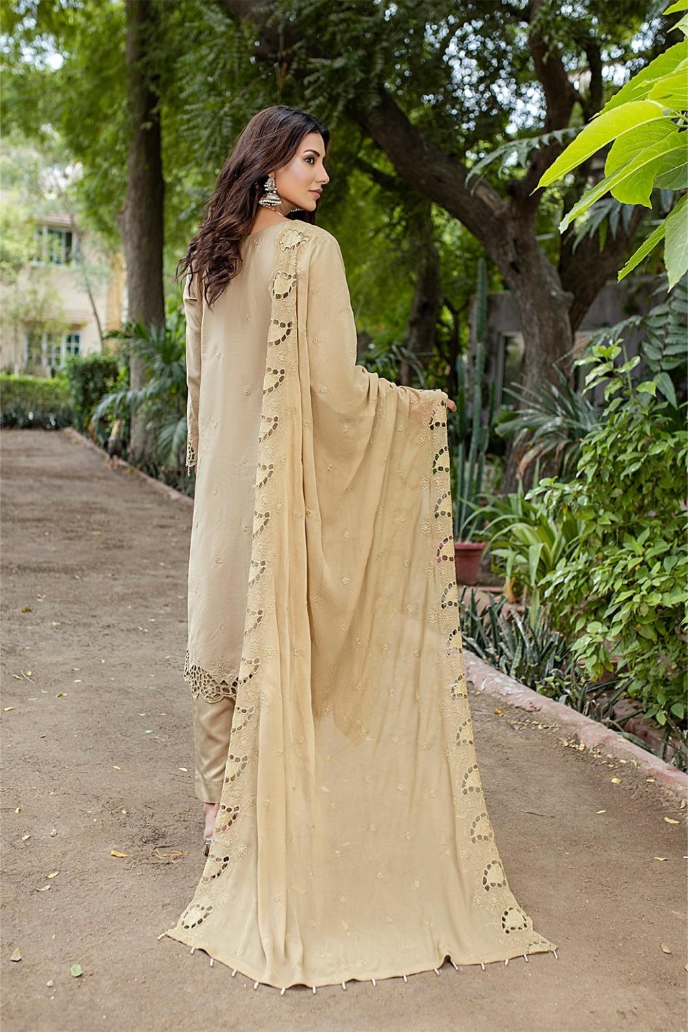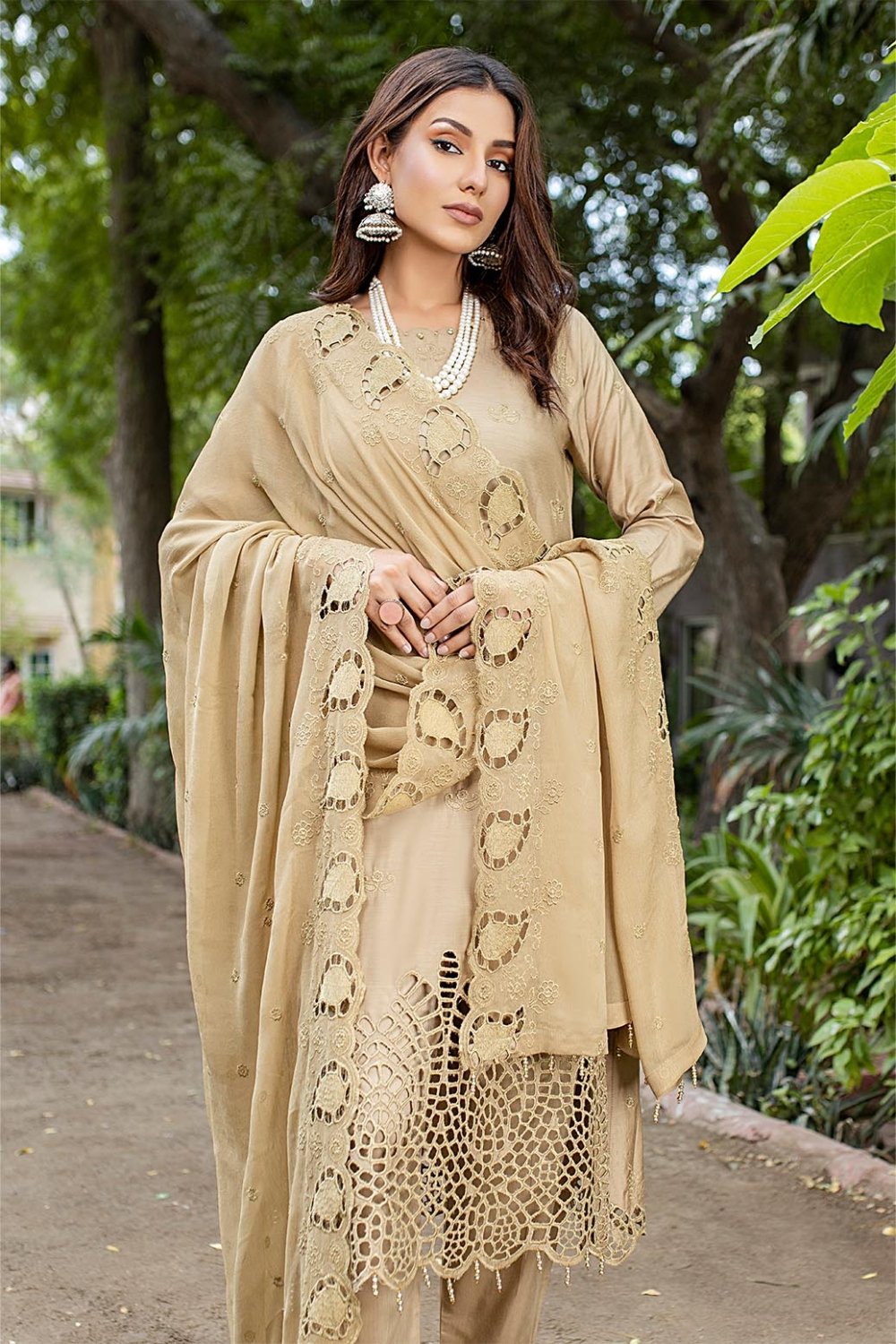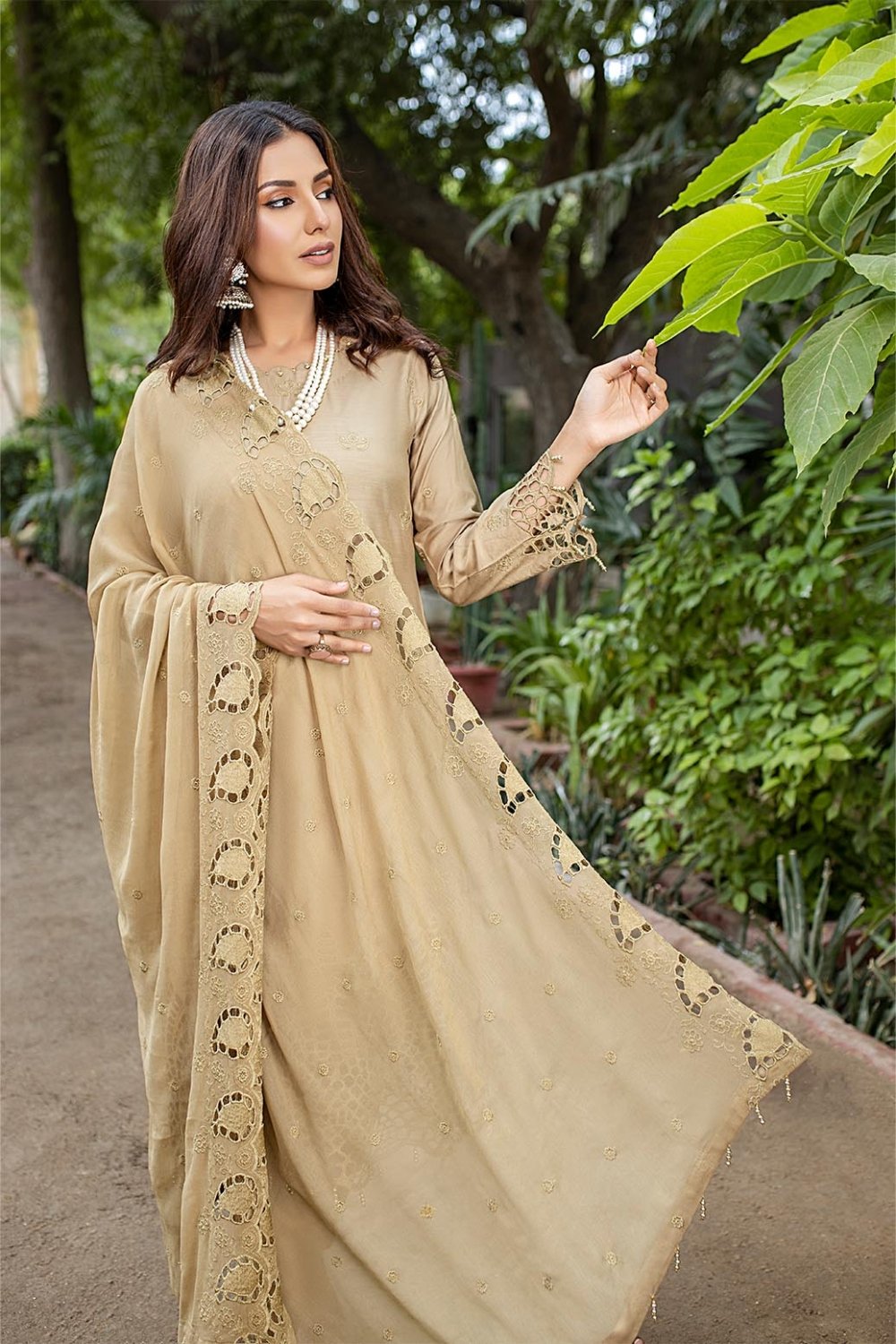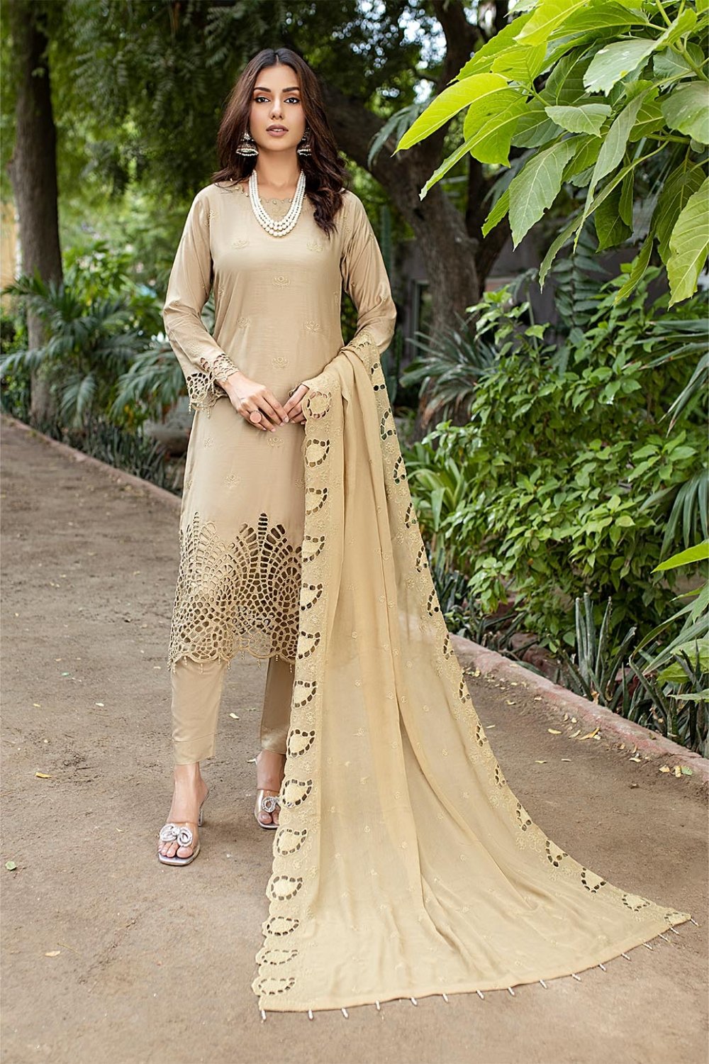 Unstitched Schiffli Big Boring On The Sleeves