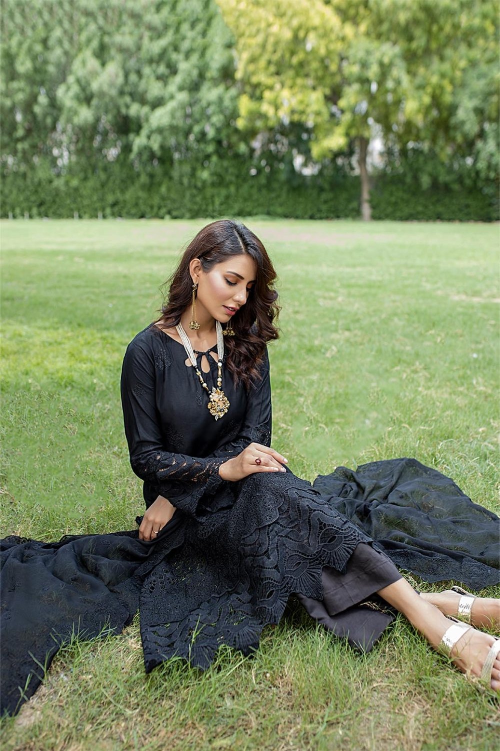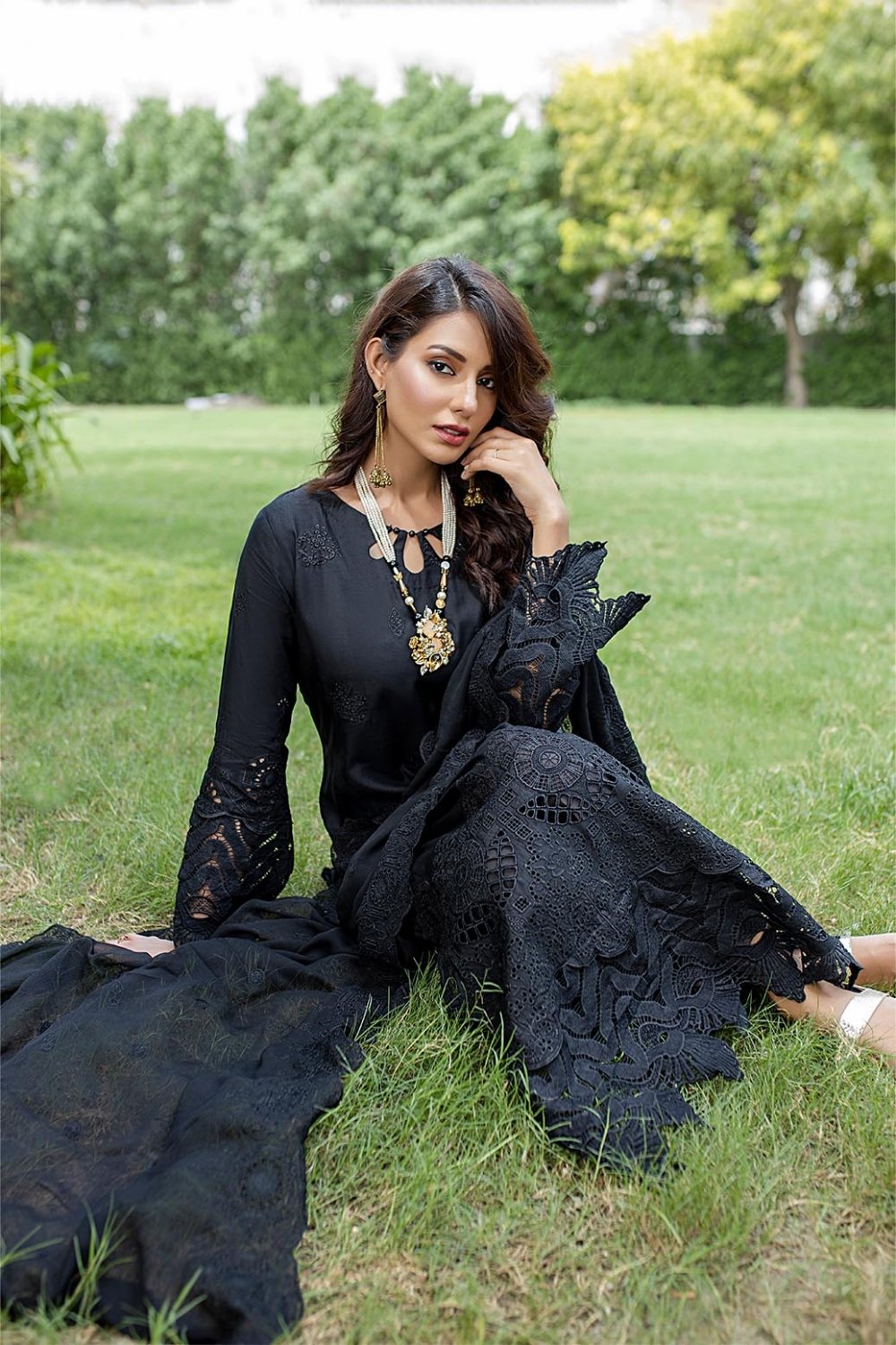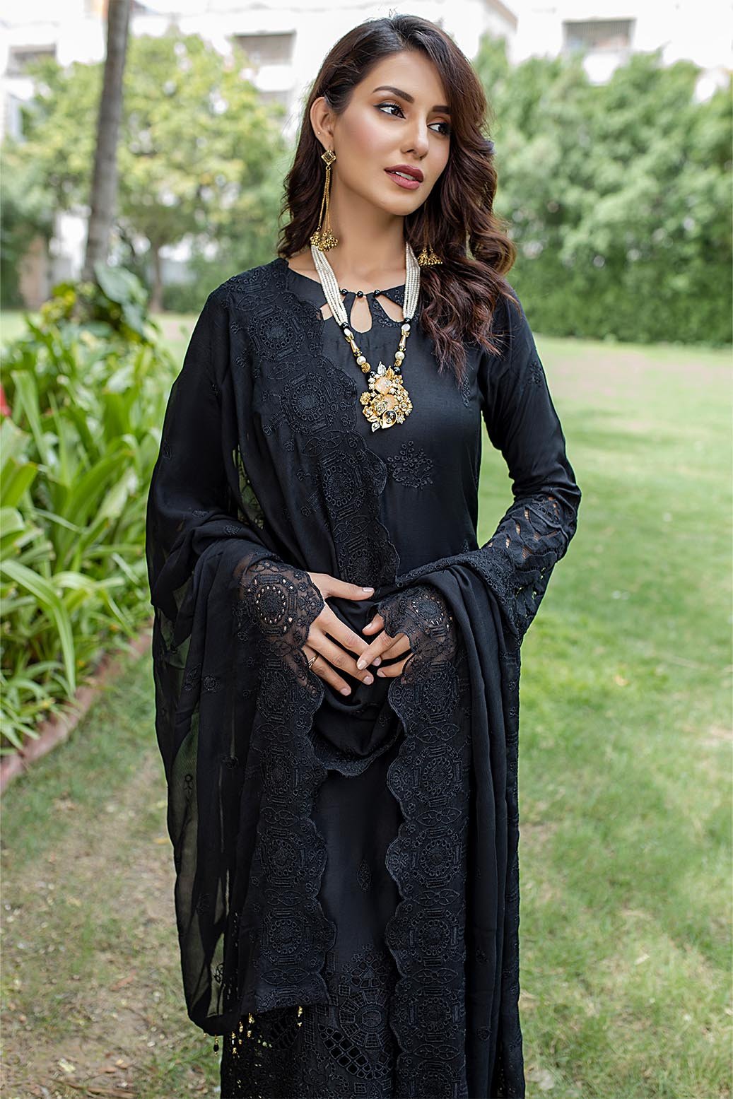 Unstitched Schiffli Big Boring On The Sleeves