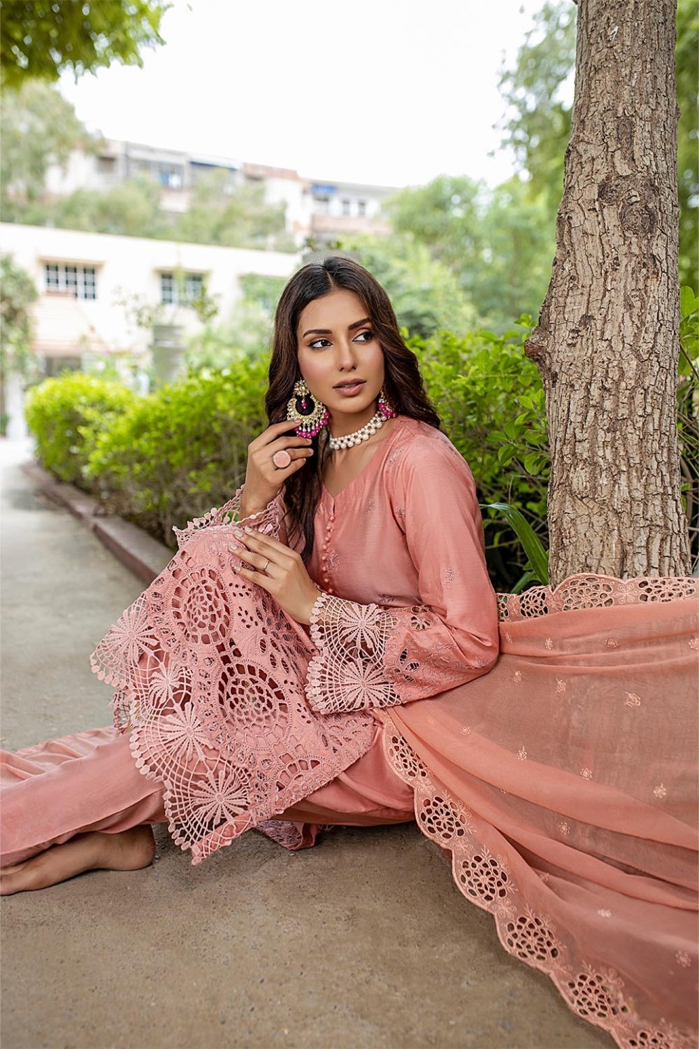 2 side Scalloped Cutwork Bambr Chiffon Dupatta