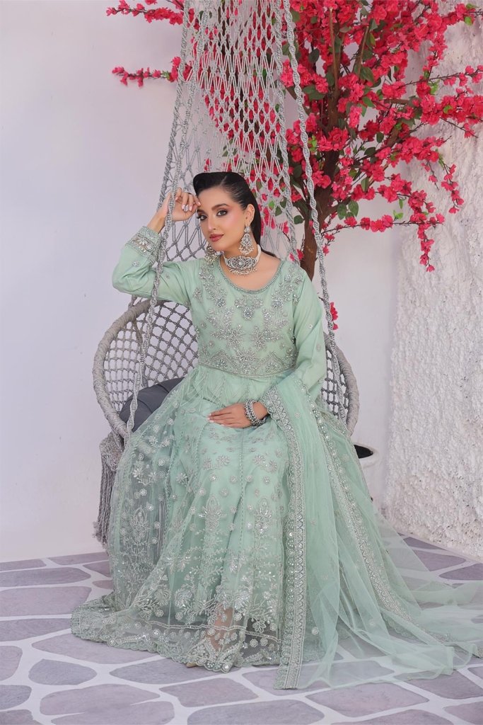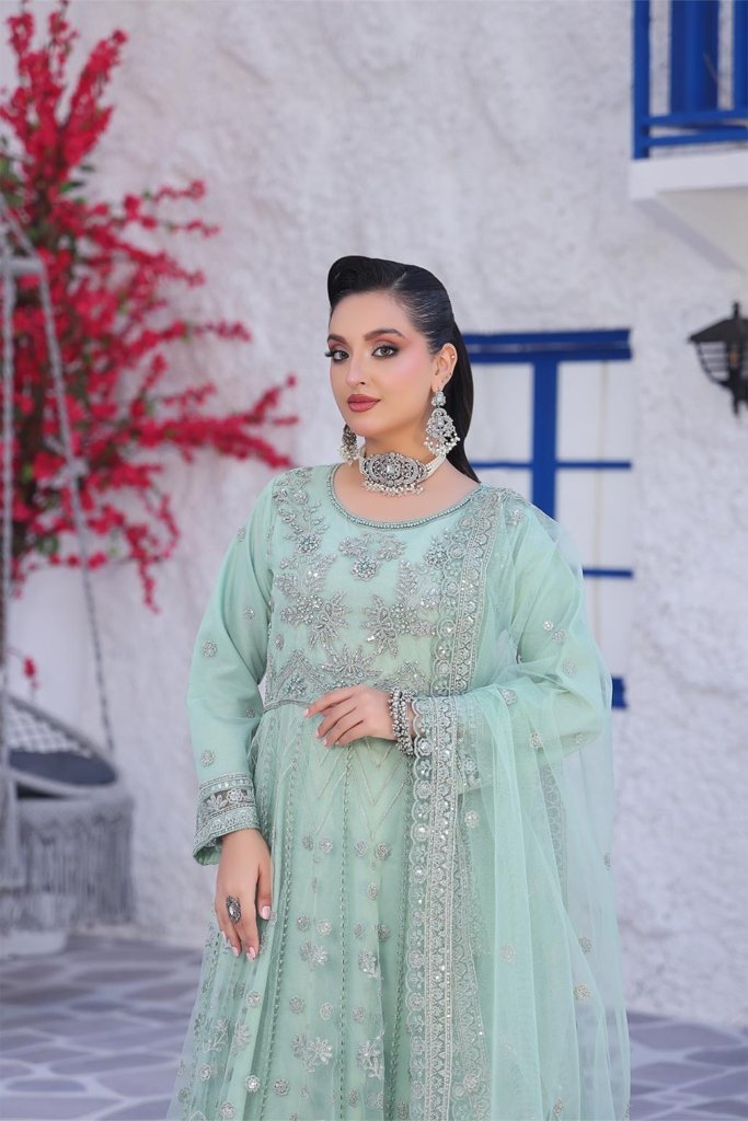 Semi Stitched Luxury Embroidered Net Fancy Maxi