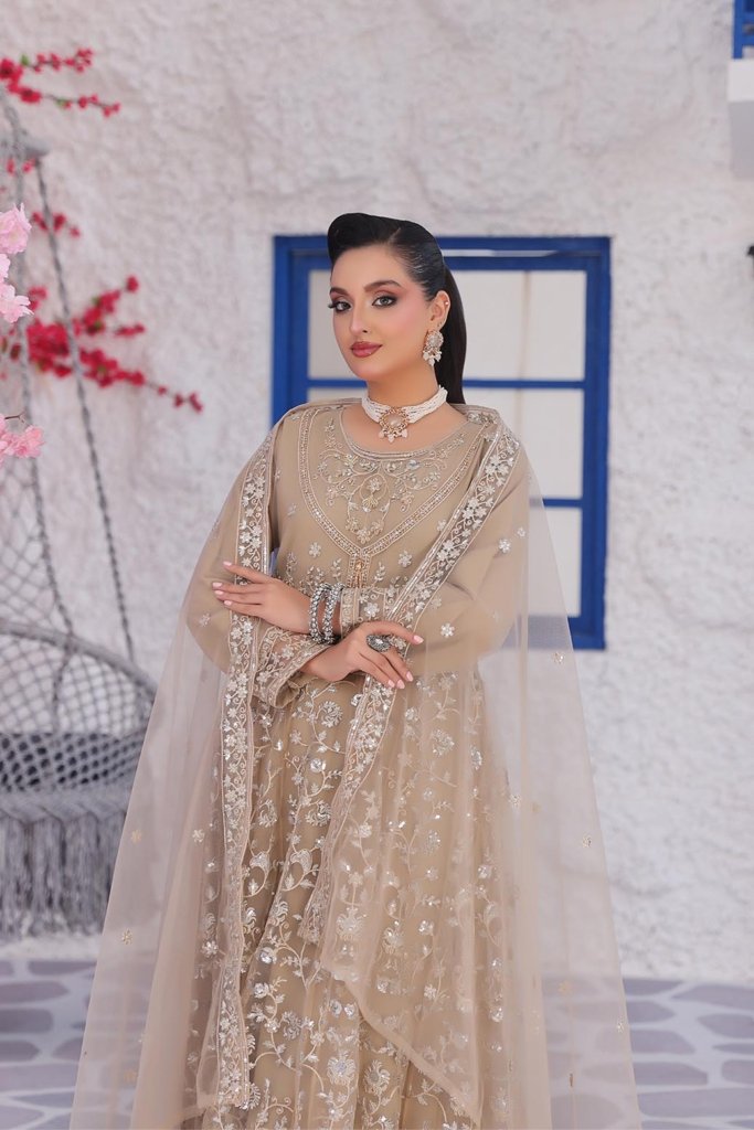 Semi Stitched Luxury Embroidered Net Fancy Maxi