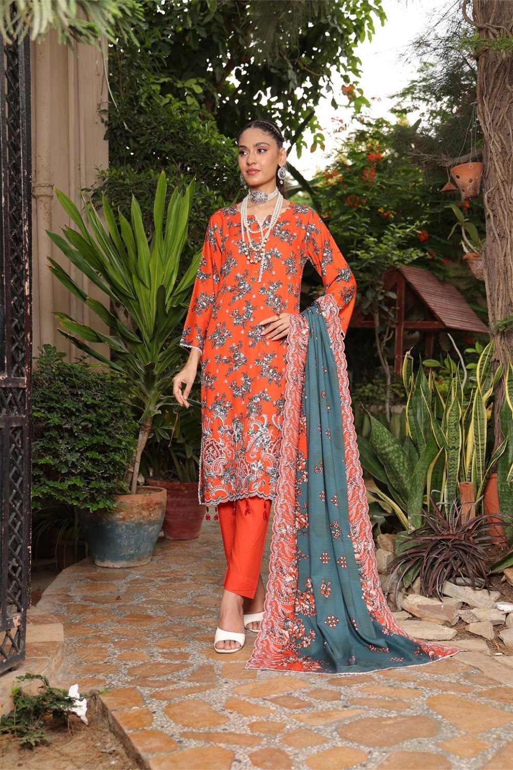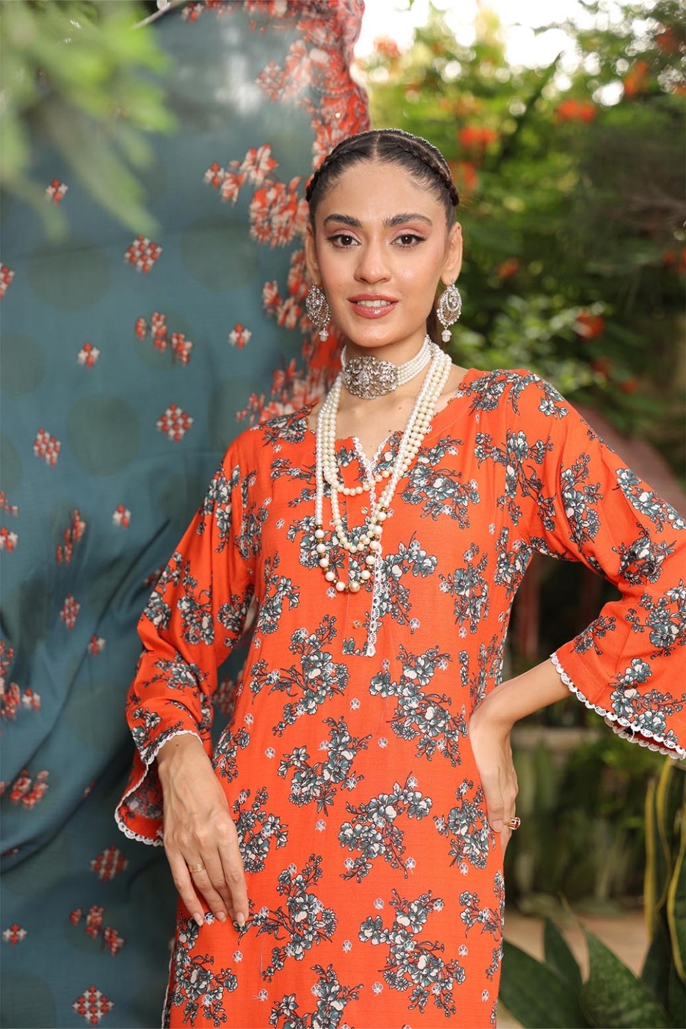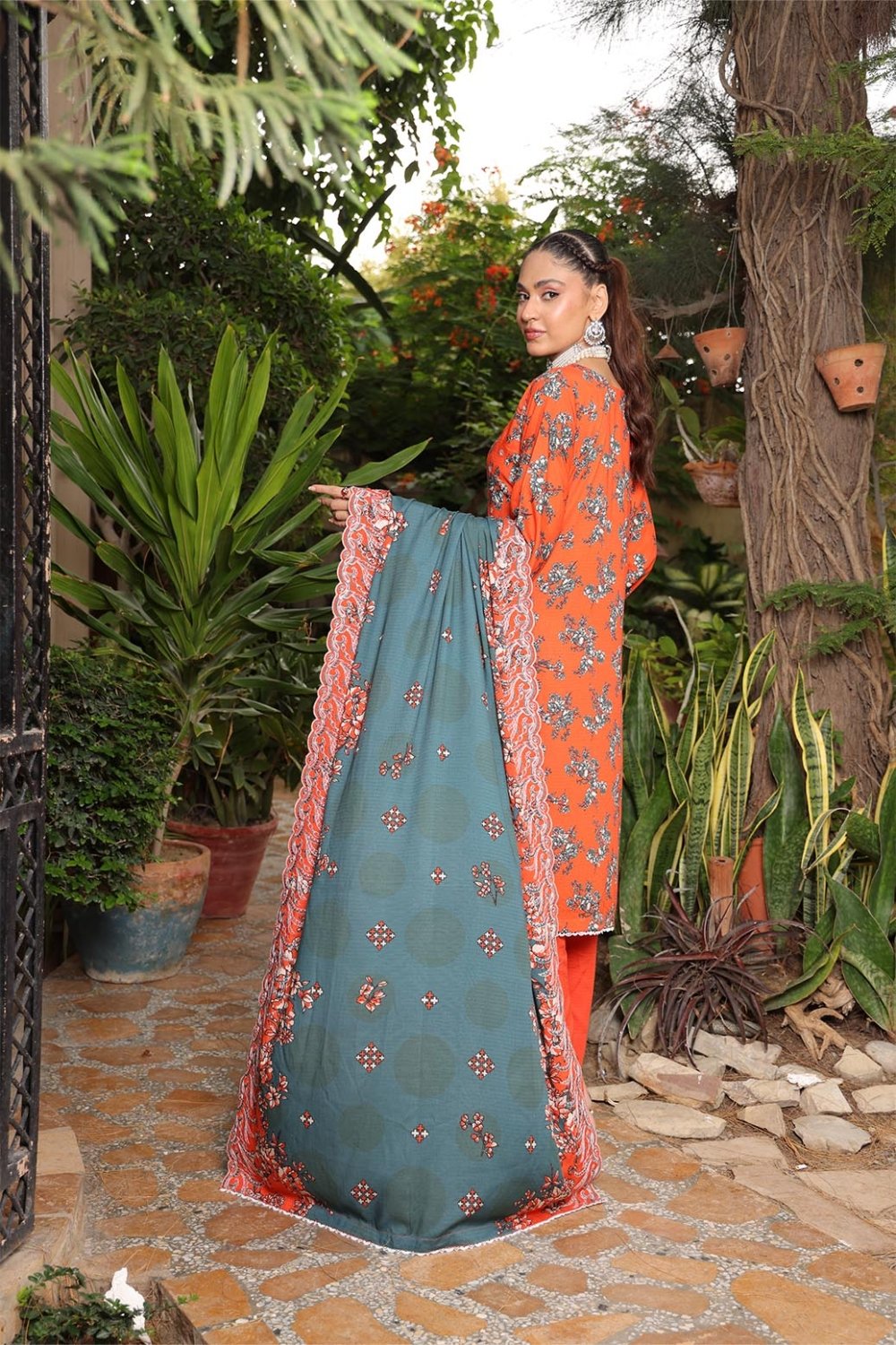 Unstitched Digital Printed Winter Doriya Shirt With Embroidered & Applique Front Digital Printed Winter Doriya Back Digital Printed Winter Doriya Sleeves 2 Side SCALLOPED CUTWORK Borders Duppata Dyed Winter doriyaTrouser