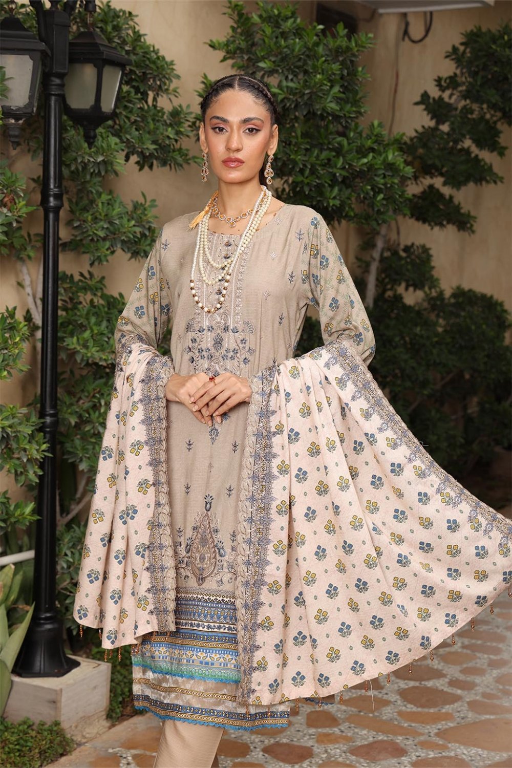 Unstitched Digital Printed Winter Doriya Shirt With Embroidered & Applique Front
