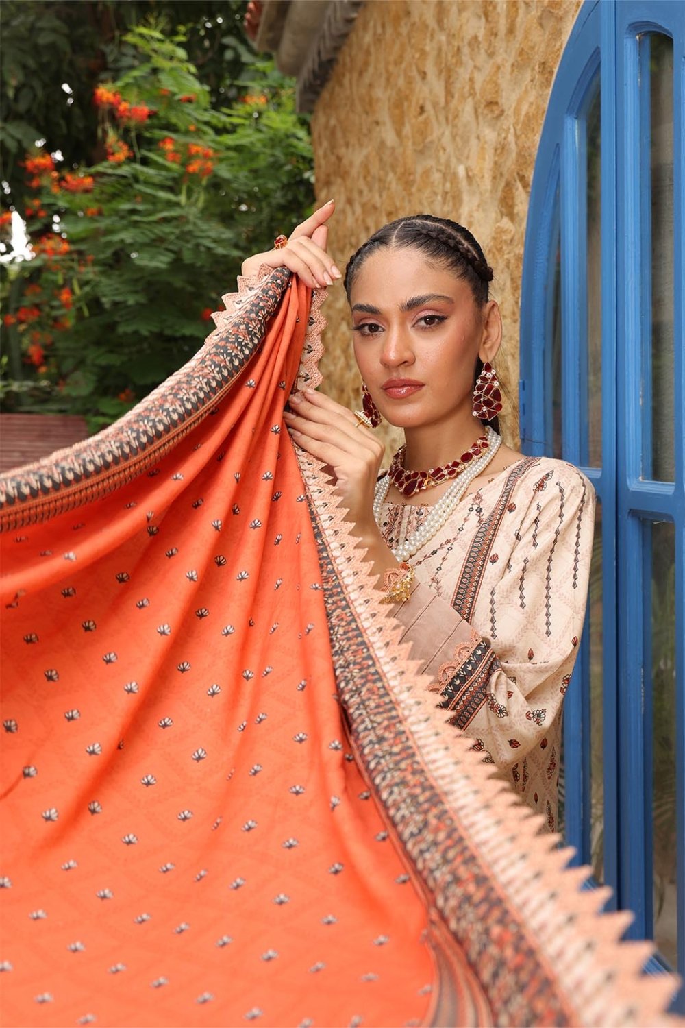 Unstitched Digital Printed Winter Doriya Shirt With Embroidered & Applique Front Digital Printed Winter Doriya Back Digital Printed Winter Doriya Sleeves 2 Side SCALLOPED CUTWORK Borders Duppata Dyed Winter doriyaTrouser