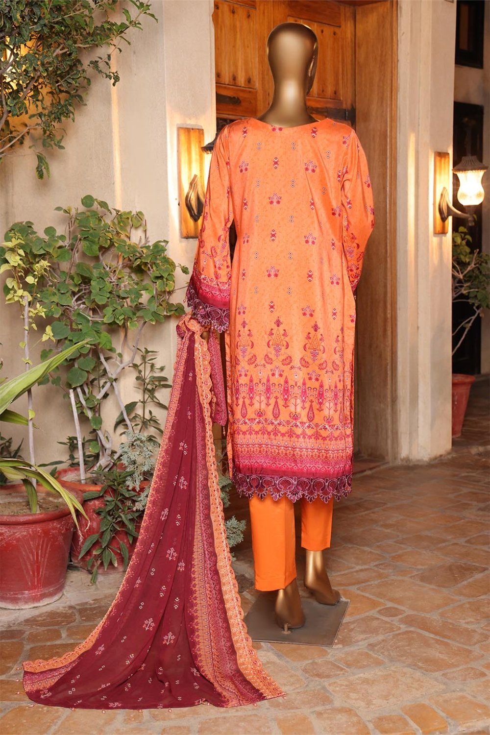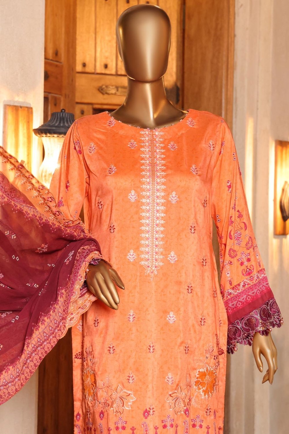 Unstitched Dyed Embroidered Slub Dhanak Peach Front