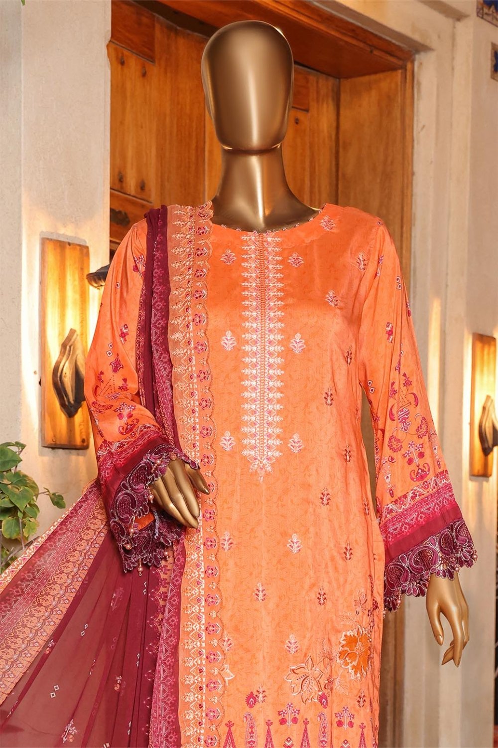 Unstitched Dyed Embroidered Slub Dhanak Peach Sleeves