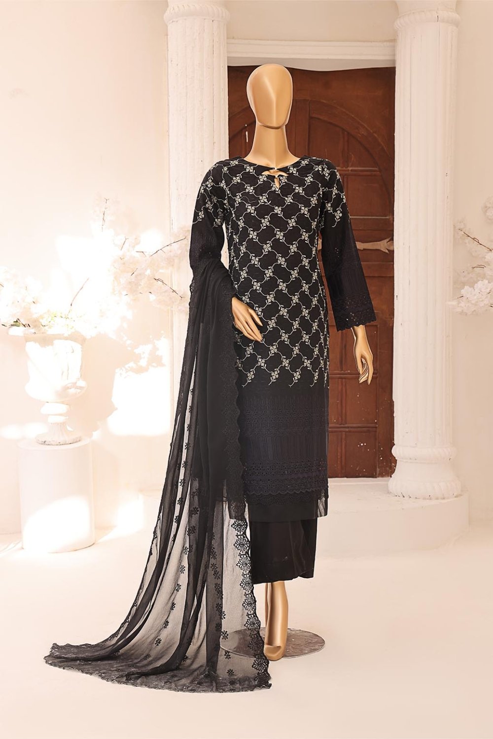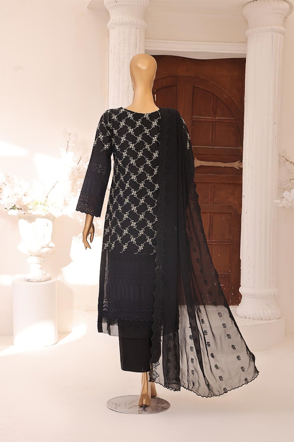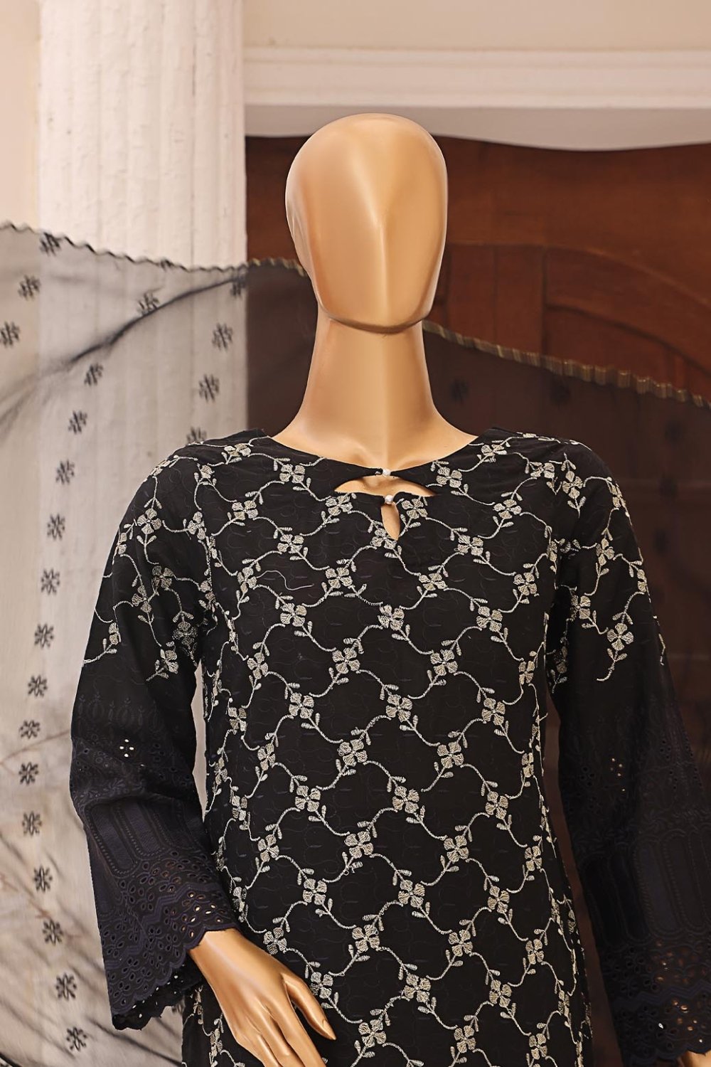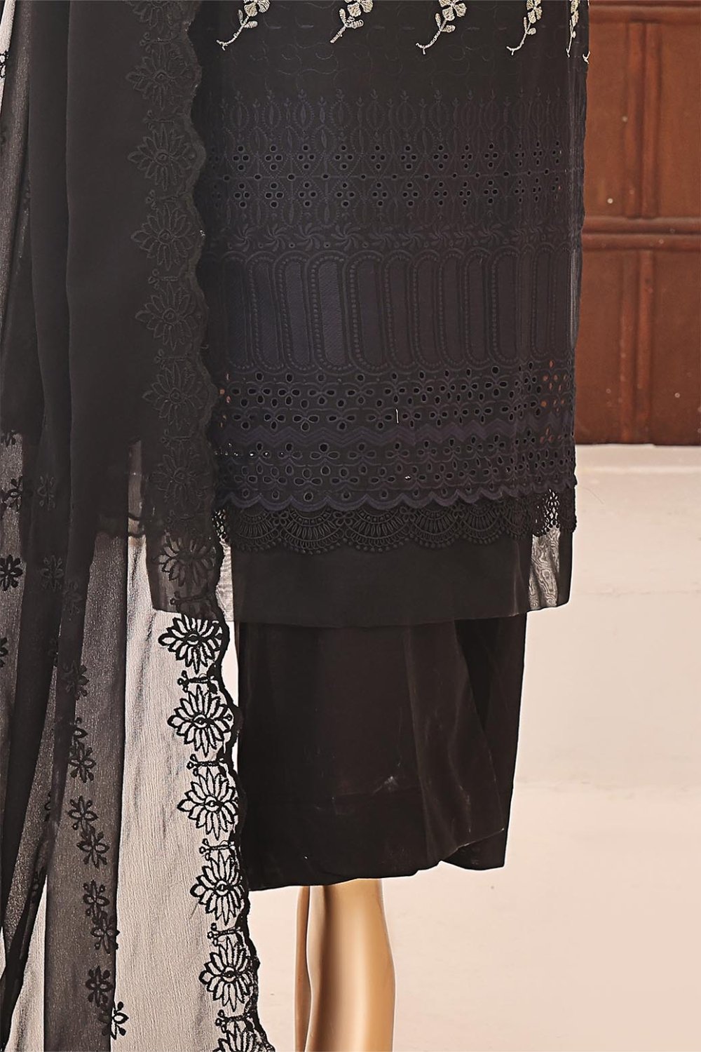 Monochrome Unstitched Dyed Zari Schiffli Shirt With Fancy Embroidered Bamber Chiffon Duppata MON-001