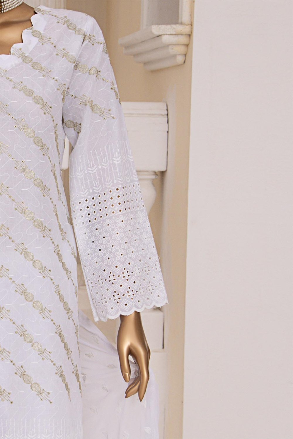 UnstitchedDyed Zari Schiffli Embroidered Sleeves