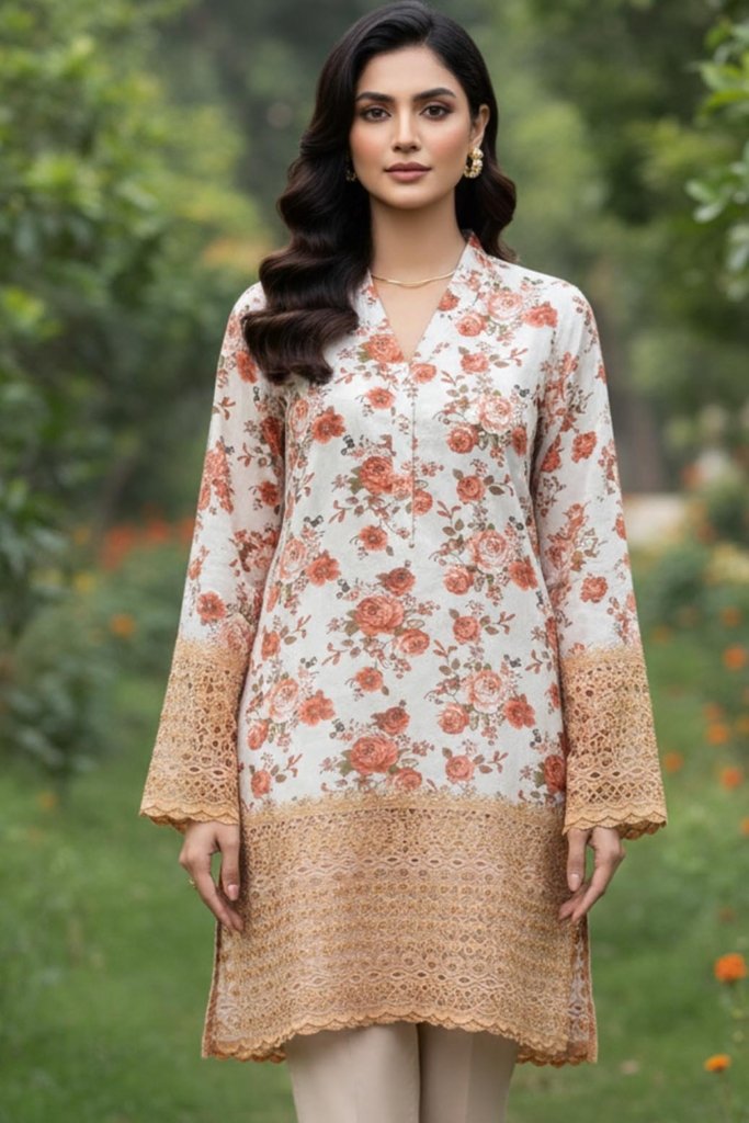 Unstitched Digital Printed With Daman Chikankari Lawn Shirt