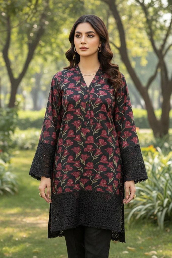 Unstitched Digital Printed With Daman Chikankari Lawn Shirt