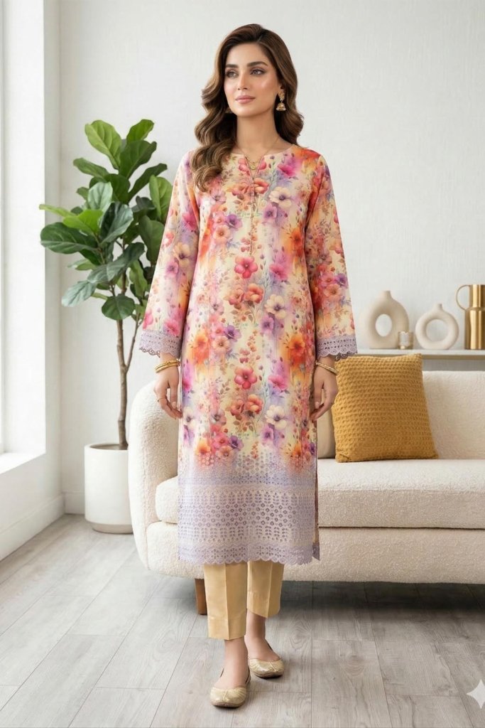 Unstitched Digital Printed With Daman Chikankari Lawn Shirt