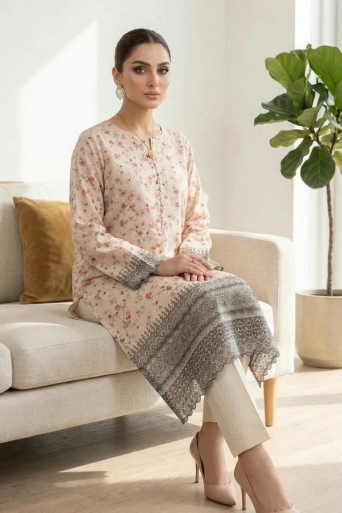 Unstitched Digital Printed With Daman Chikankari Lawn Shirt