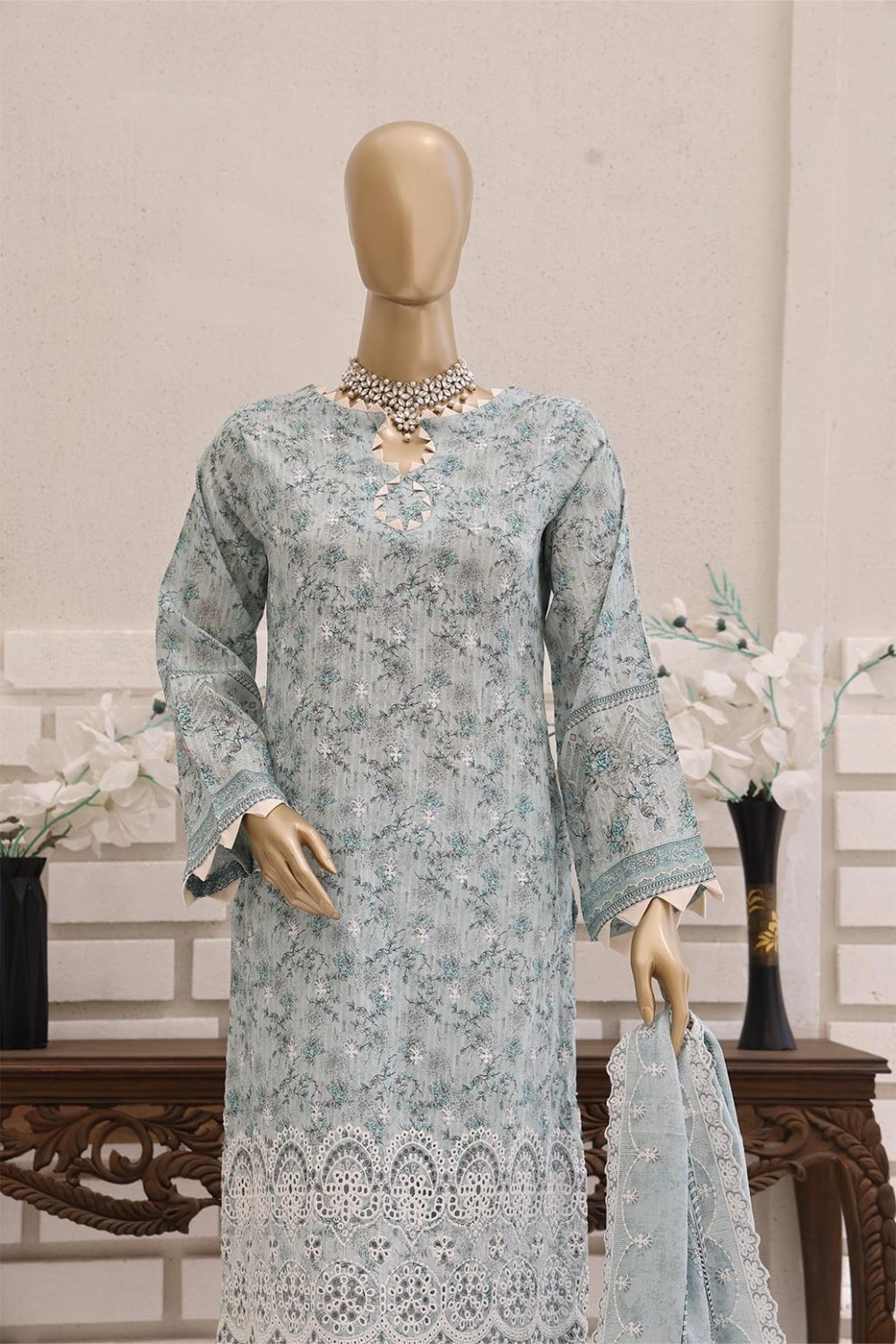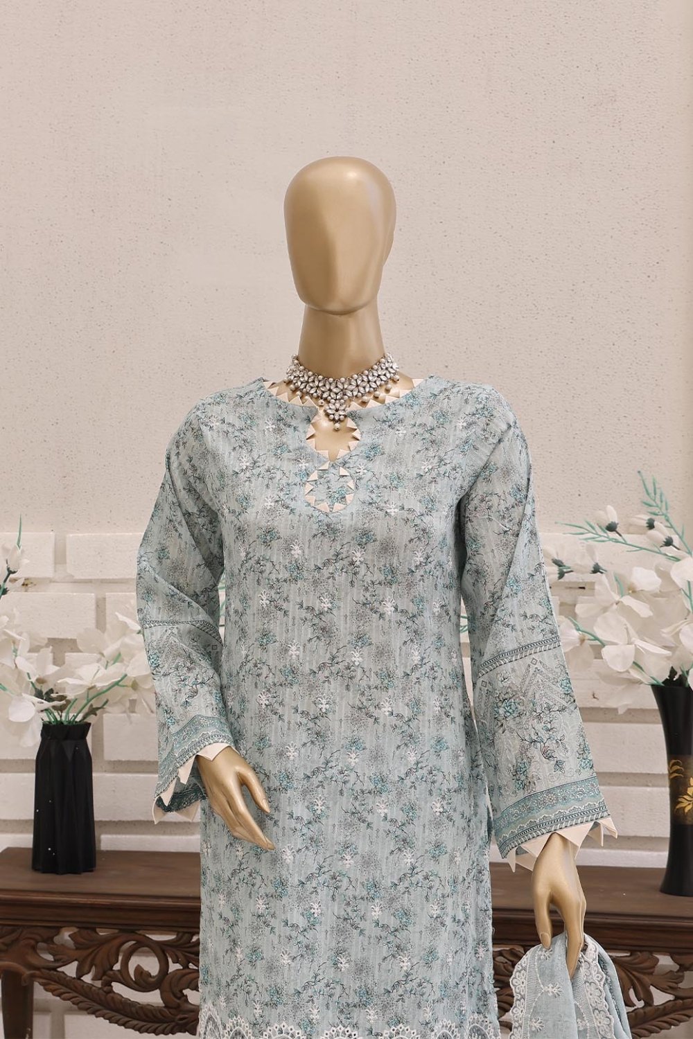 Unstitched Digital Printed Lawn With Embroidered Front