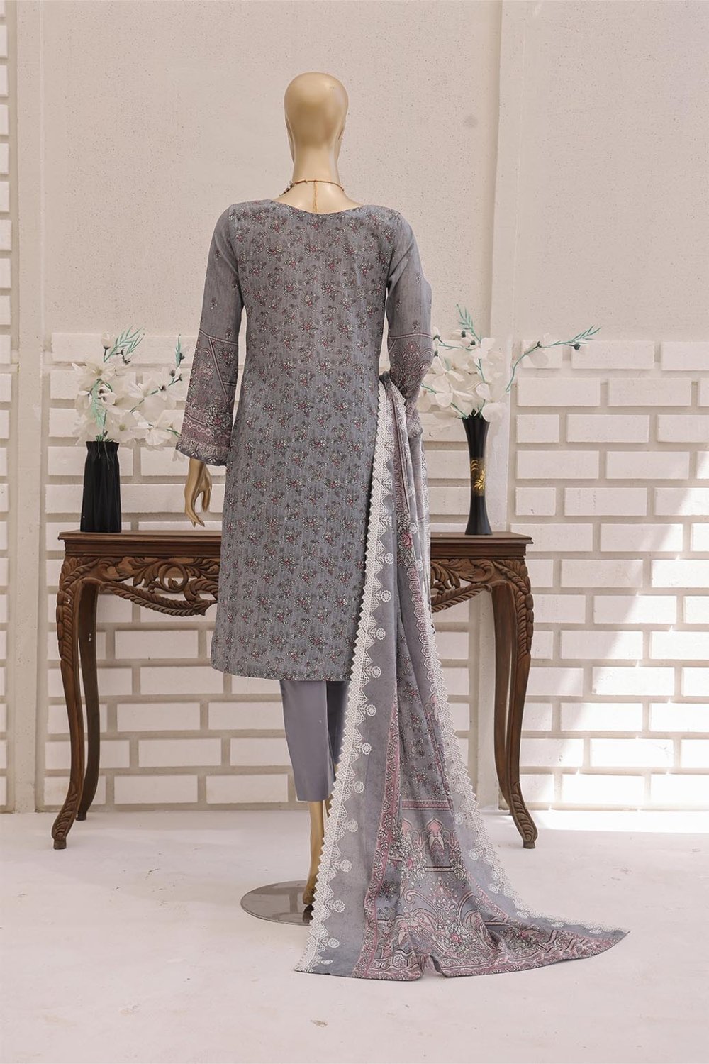 Pearl White Vol-2 Unstitched Digital Printed Lawn With Embroidered Front & 2 Side Scalloped Printed Voil Duppata PEA-014