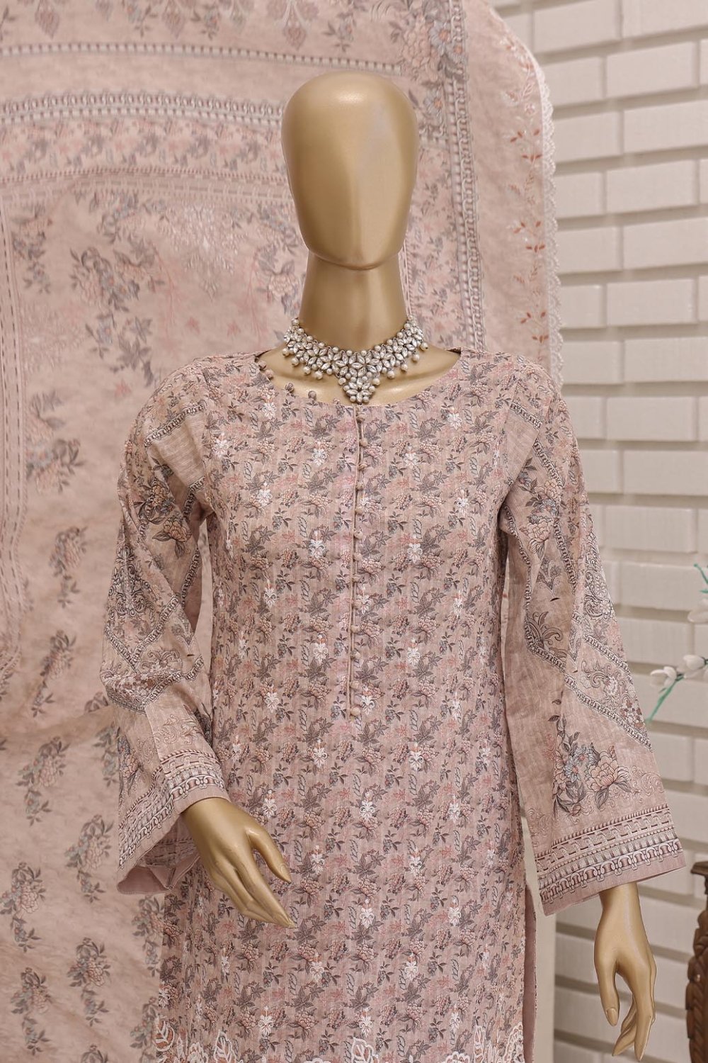 Unstitched Digital Printed Lawn With Embroidered Front