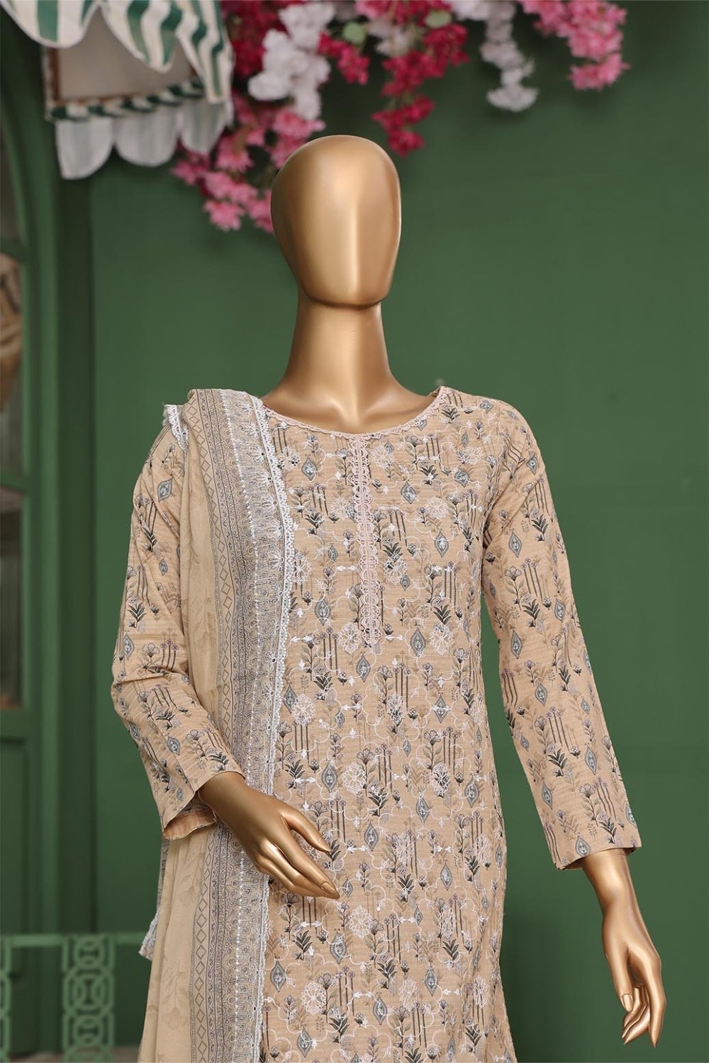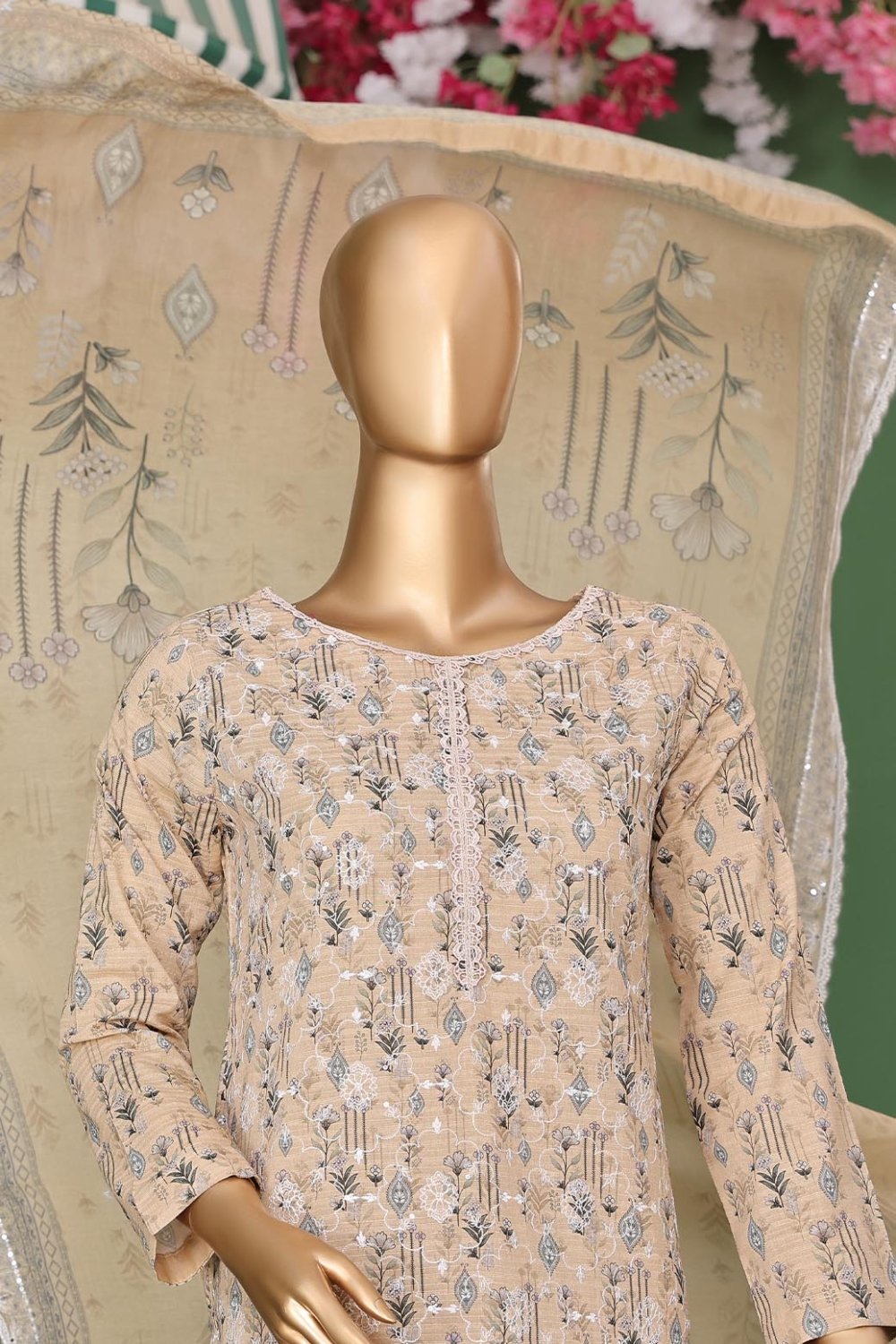 Pearl White Vol-3 Unstitched Digital Printed Lawn With Embroidered Front & 2 Side Scalloped Printed Voil Duppata PEA-028