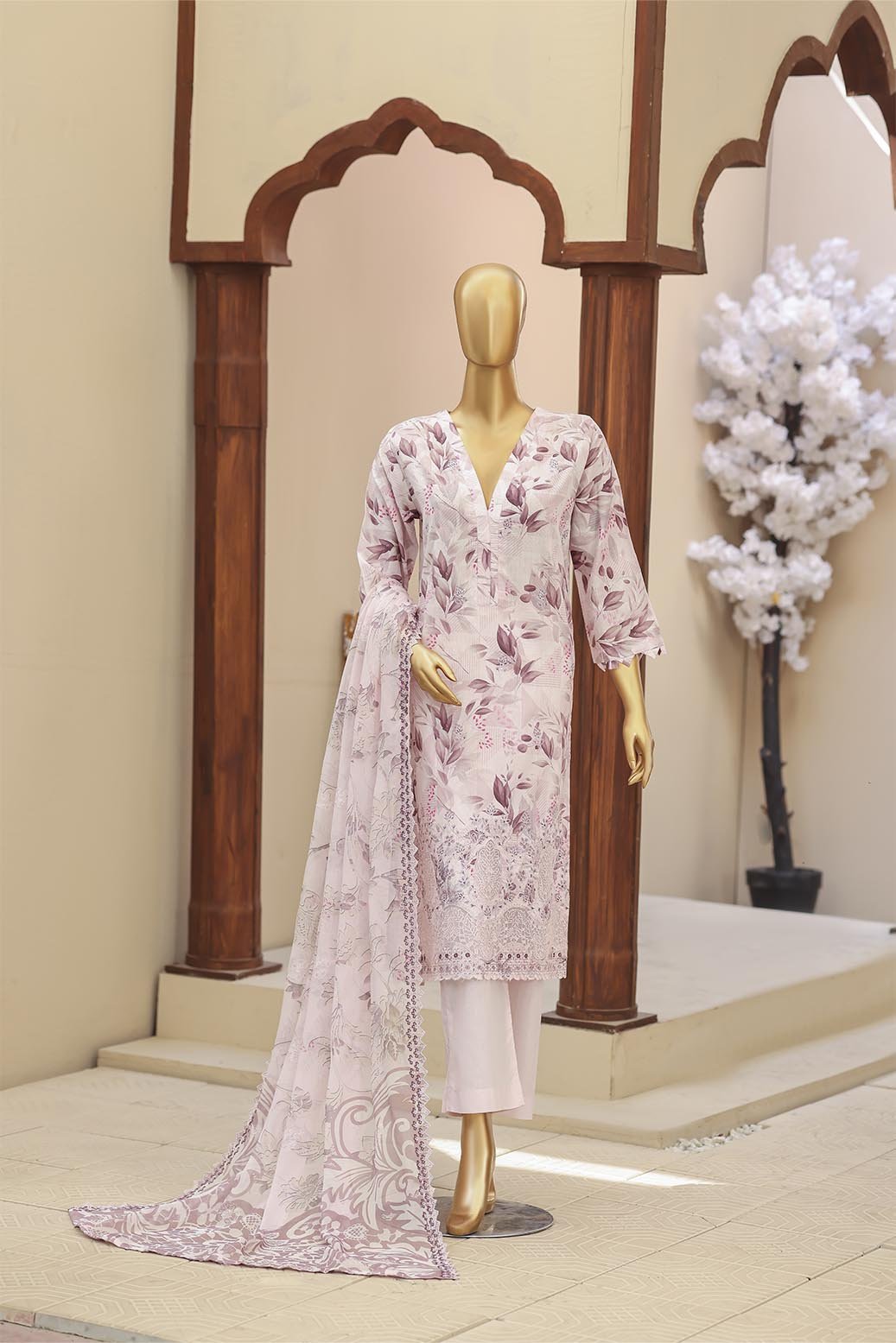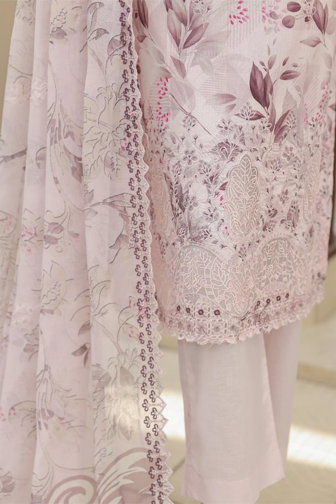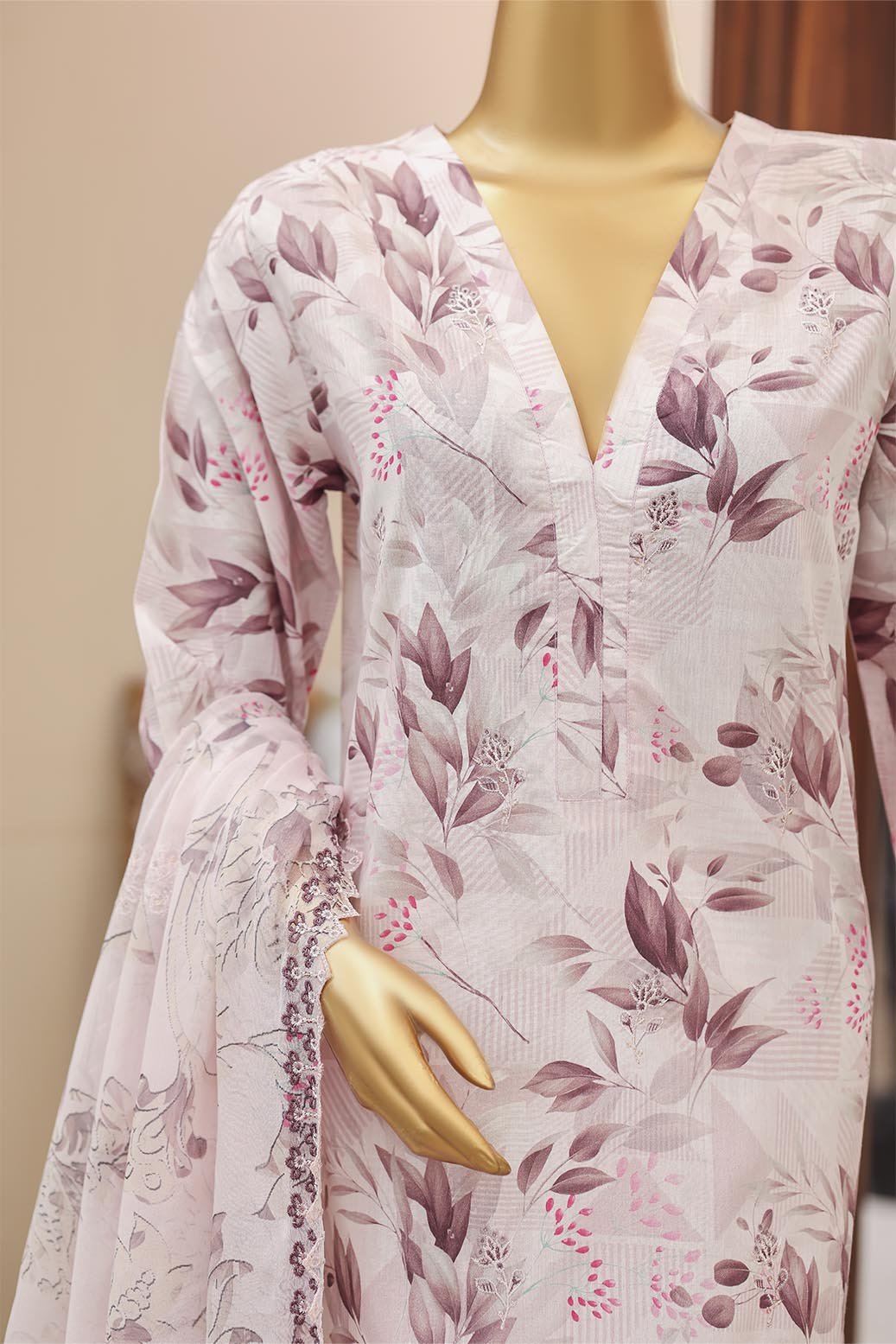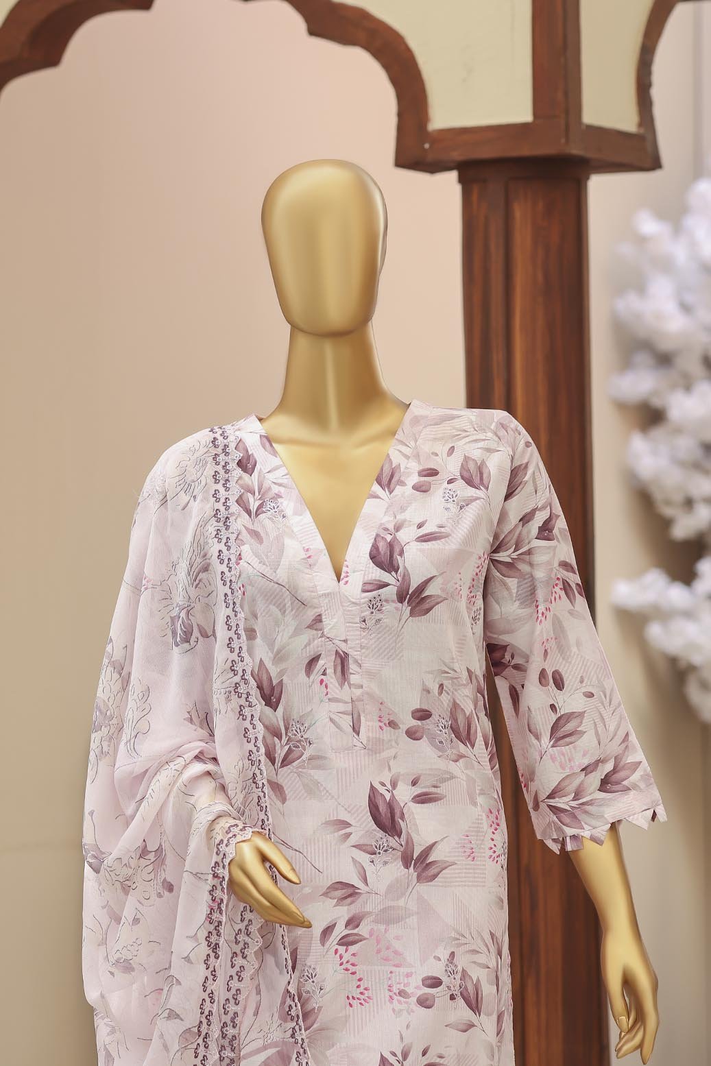 Pearl White Vol-2 Unstitched Digital Printed Lawn With Embroidered Front & 2 Side Scalloped Printed Voil Duppata PEA-013