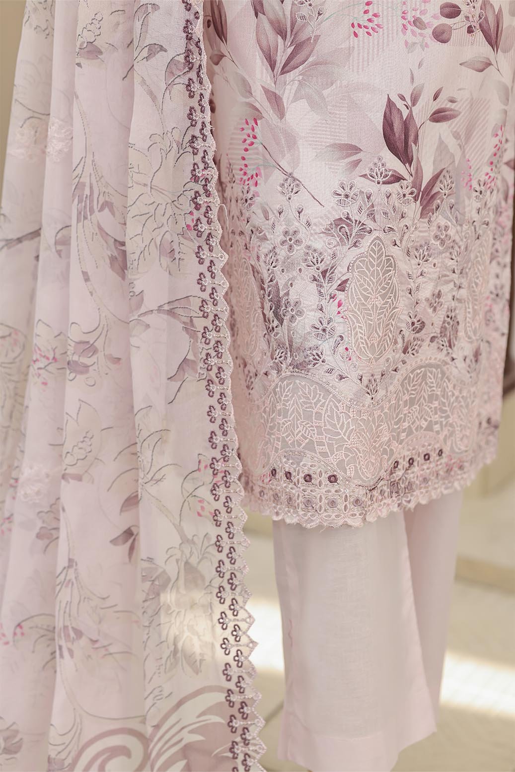 Pearl White Vol-2 Unstitched Digital Printed Lawn With Embroidered Front & 2 Side Scalloped Printed Voil Duppata PEA-016