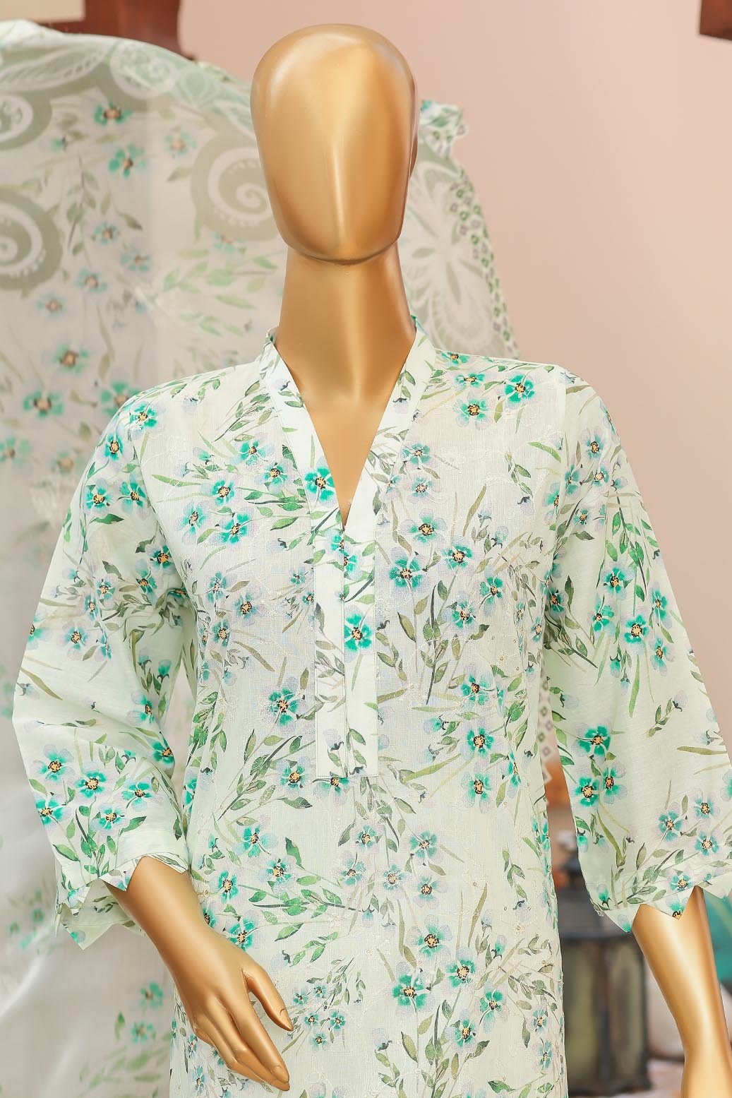 Unstitched Digital Printed Embroidered Lawn Shirt