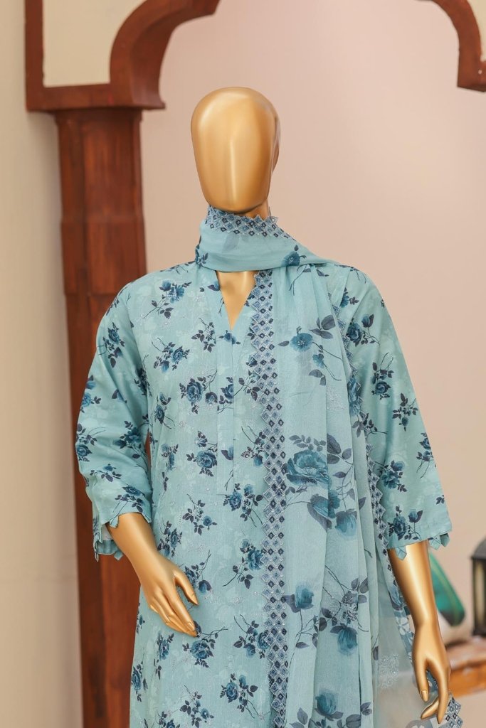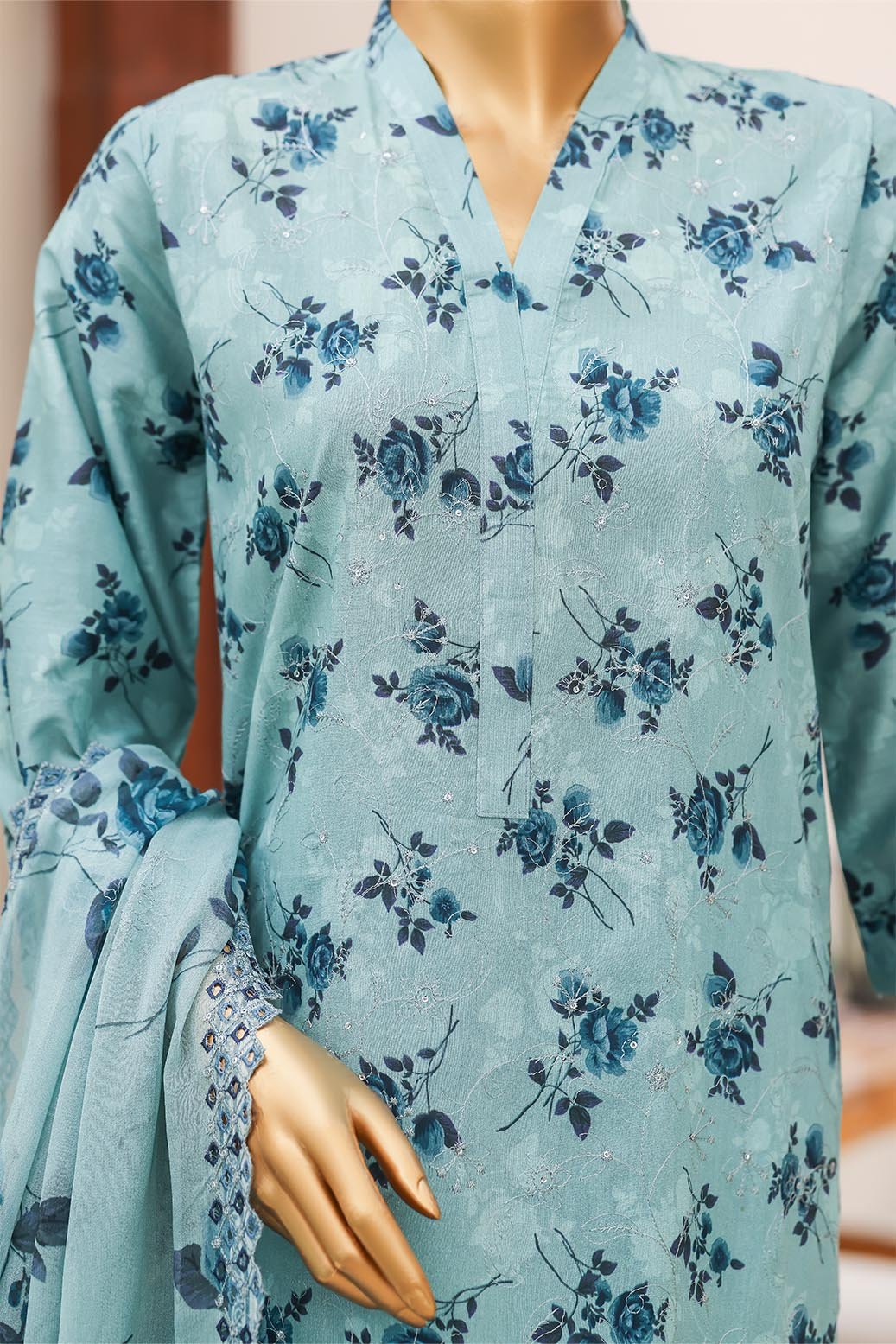 Unstitched Digital Printed Embroidered Lawn Shirt