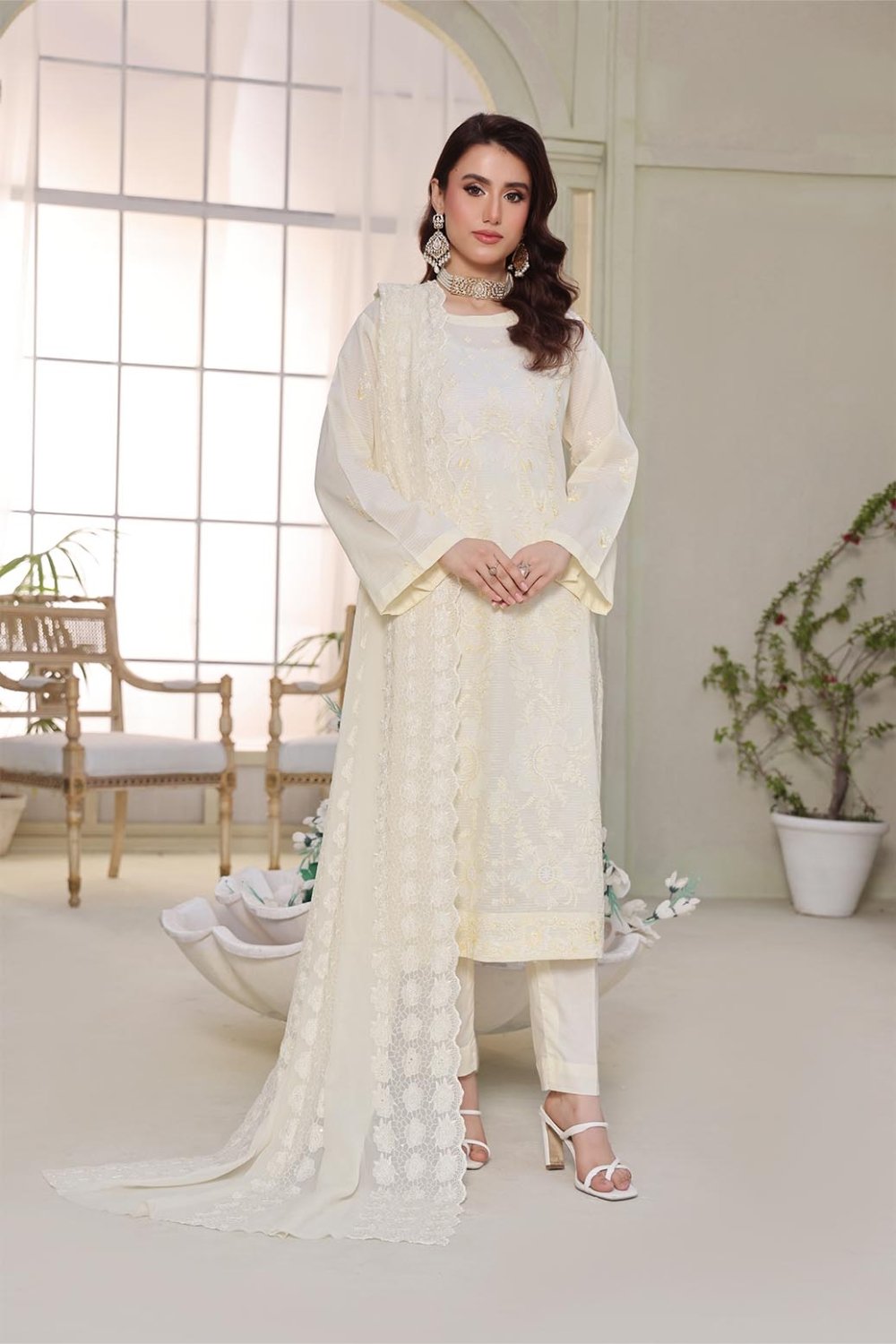 Traddition Unstitched Embroidered Doriya Lawn Shirt With Fancy Bamber Chiffon Duppata TRA-002
