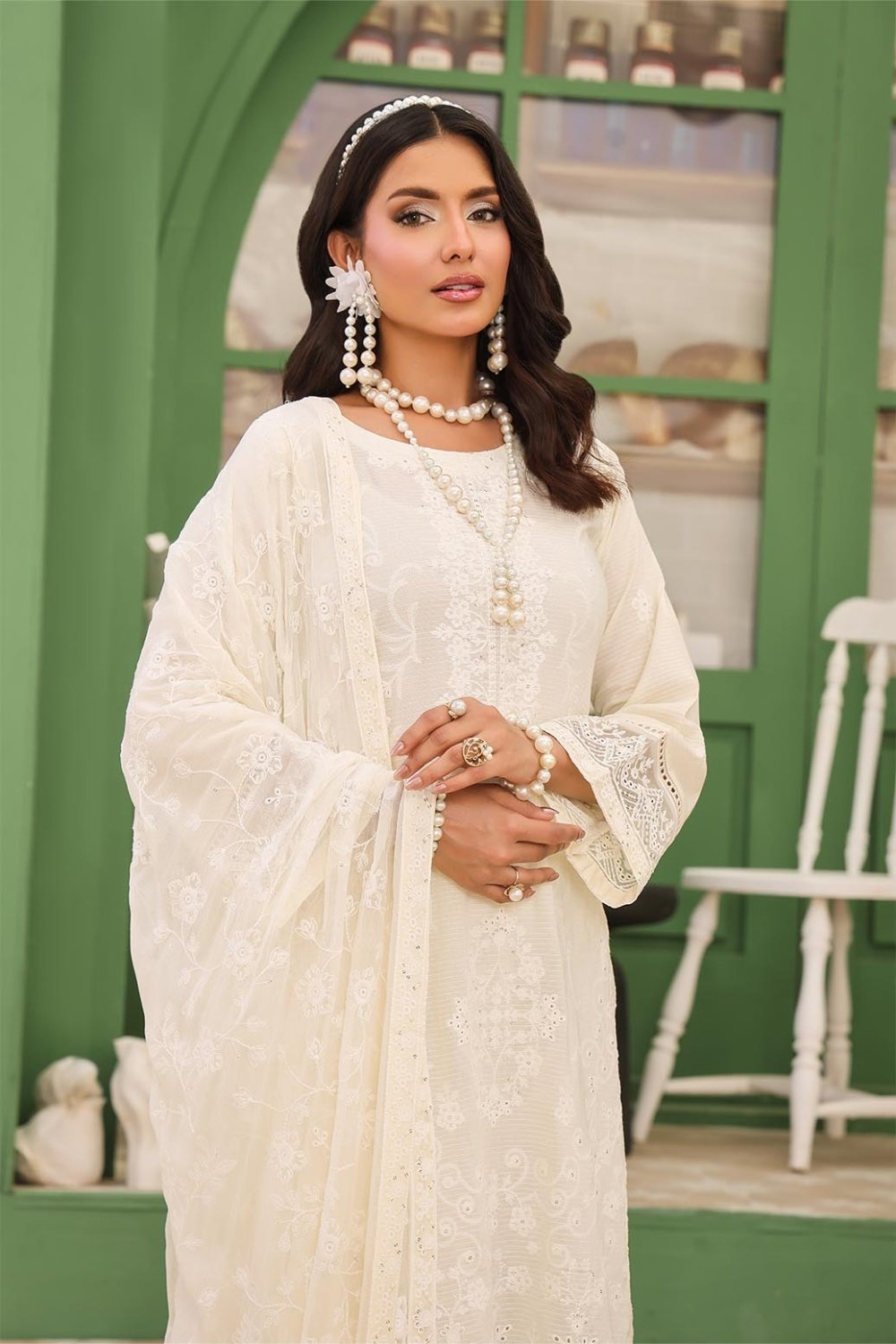 Vanilla Unstitched Dyed Embroidered Doriya Lawn With Exclusive Embroidered Bamber Chiffon Duppata VAN-001