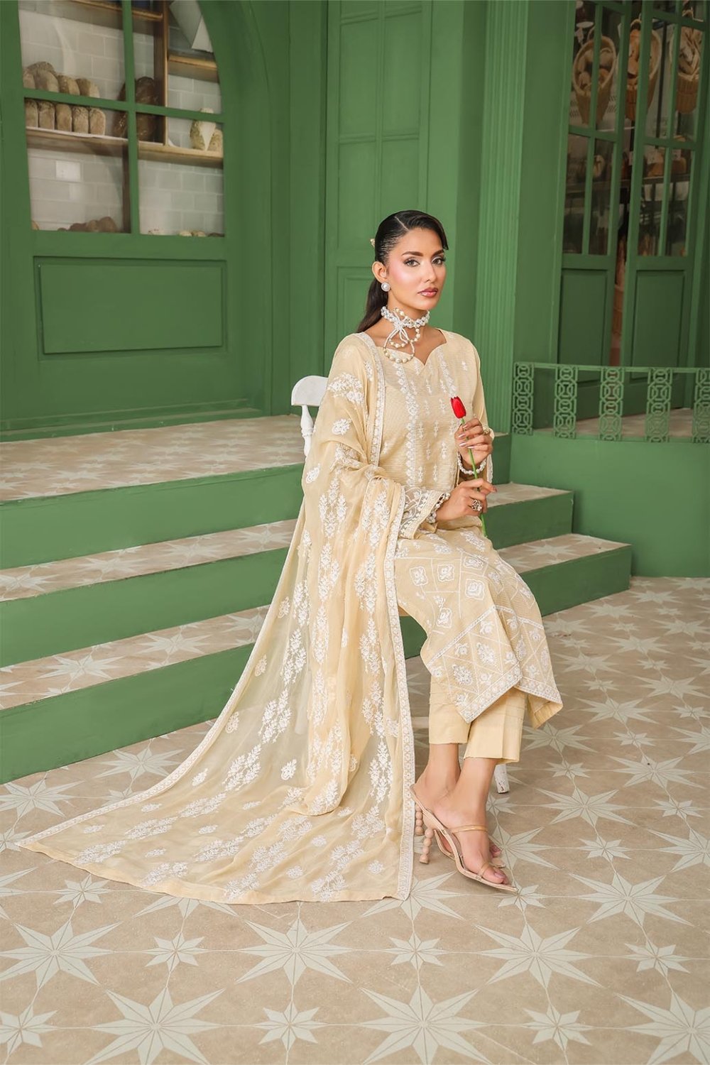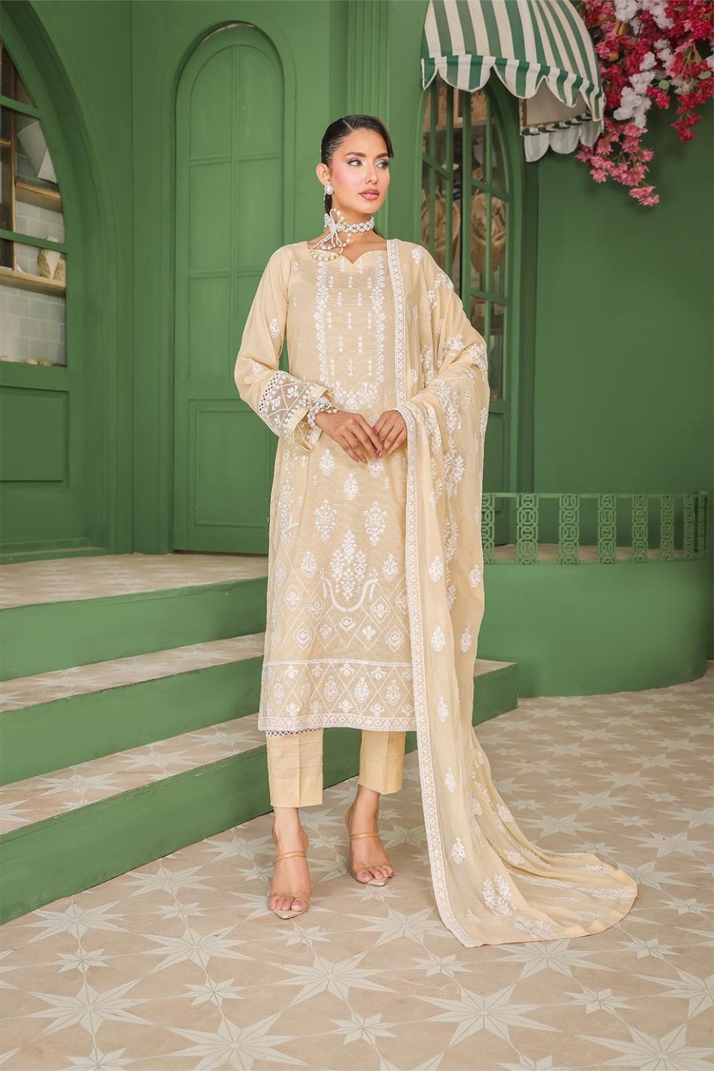 Vanilla Unstitched Dyed Embroidered Doriya Lawn With Exclusive Embroidered Bamber Chiffon Duppata VAN-003