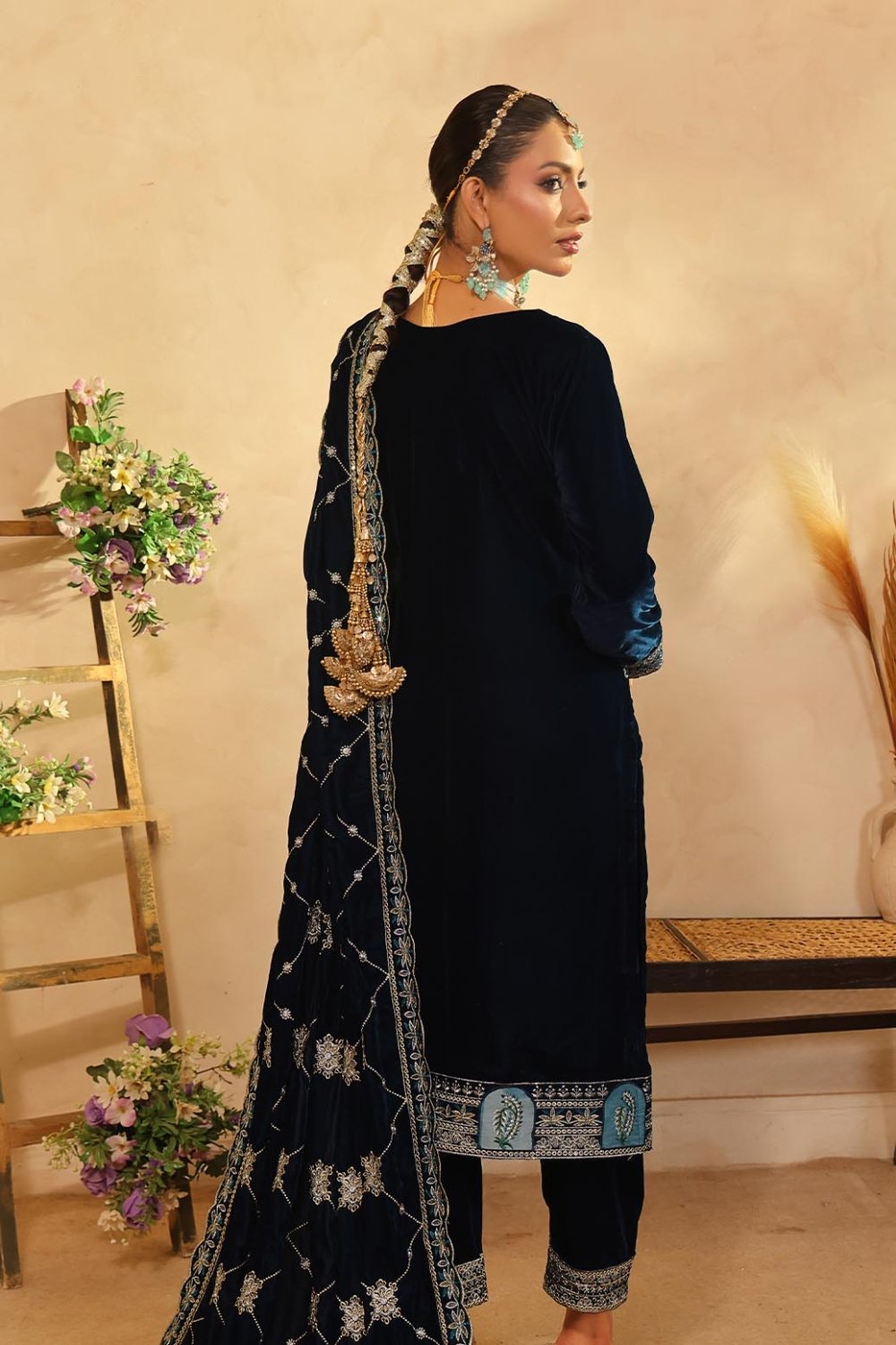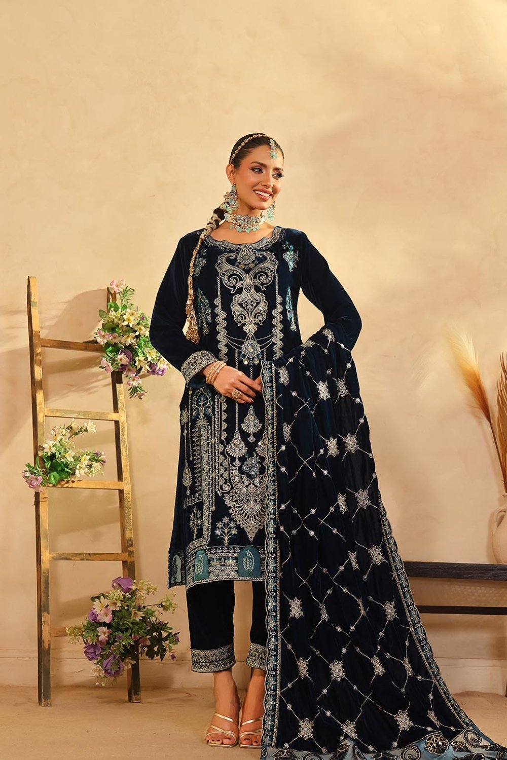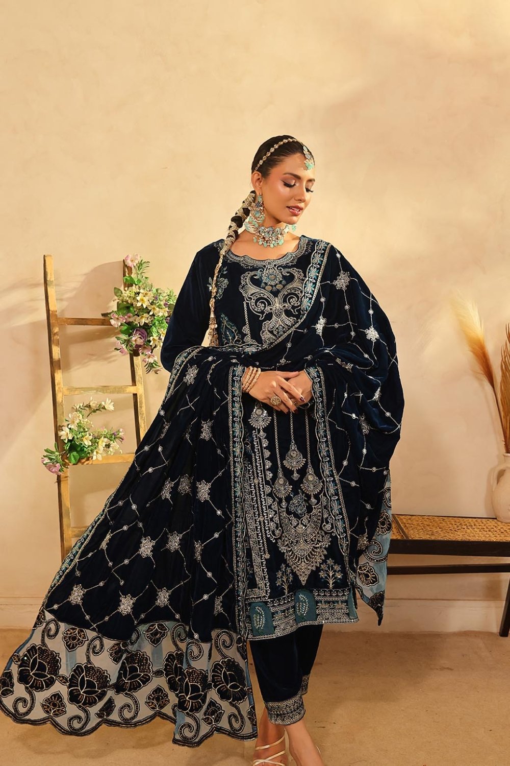 Unstitched 3 Pcs Embroidered Velvet & With Adda Takai Hand Work Shirt
