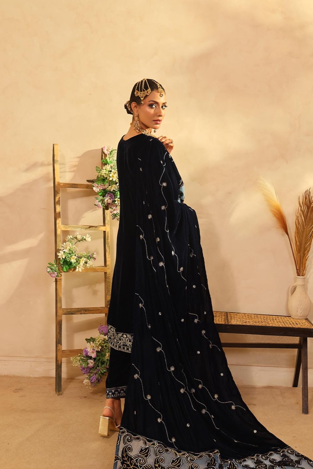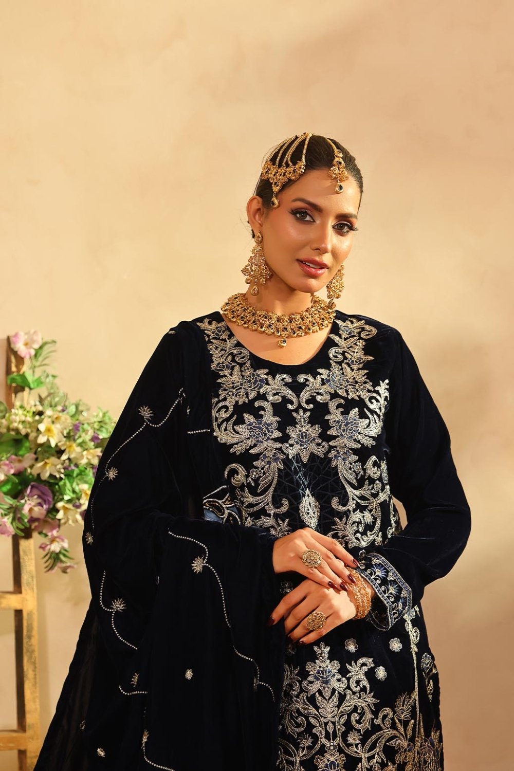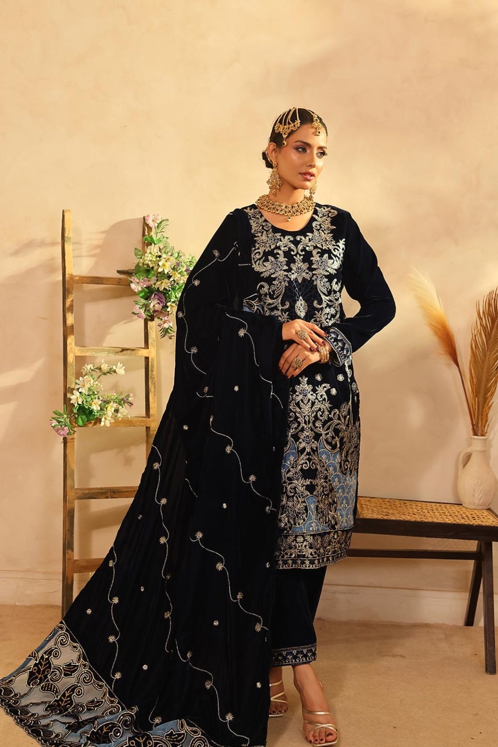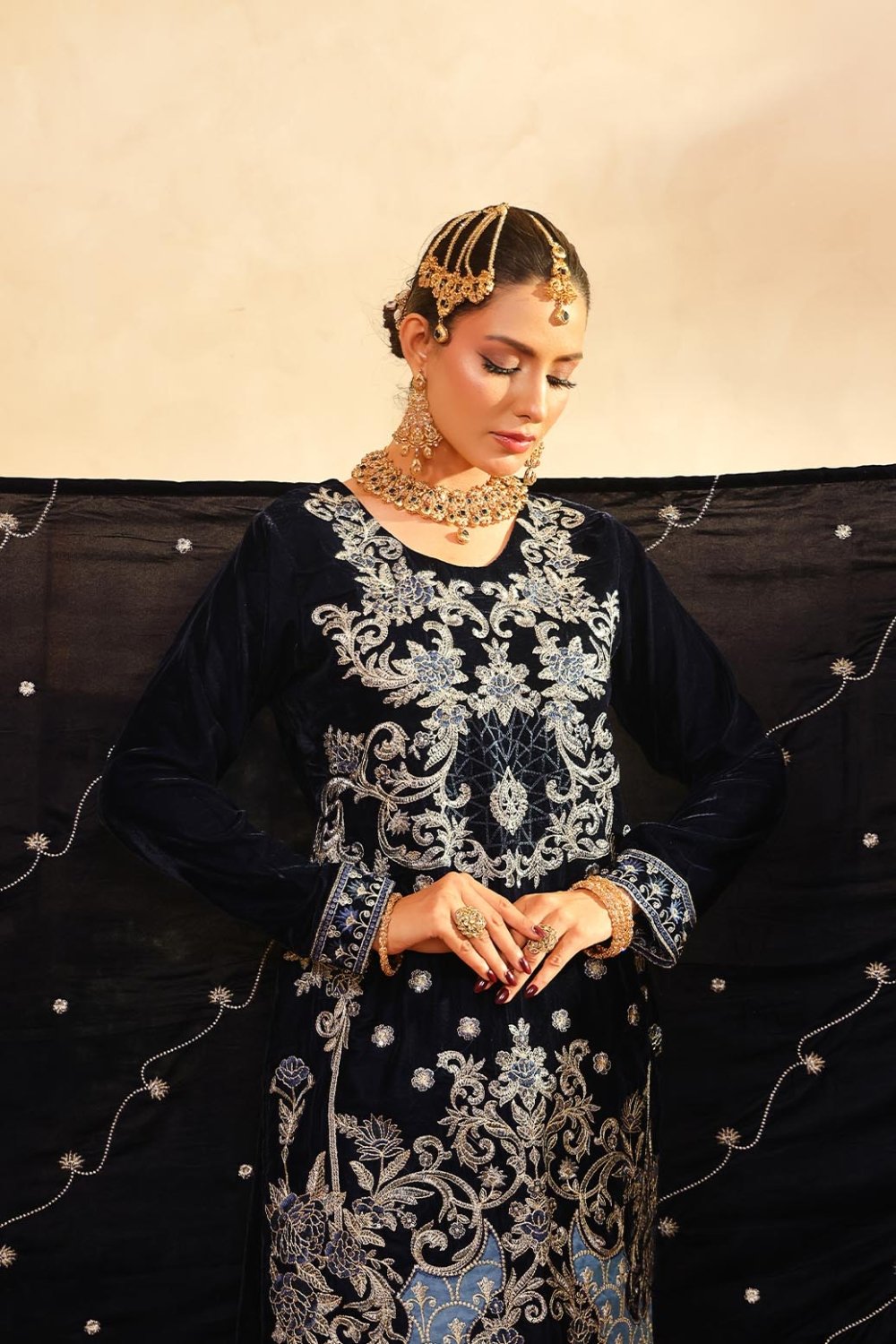 Unstitched 3 Pcs Embroidered Velvet & With Adda Takai Hand Work Shirt