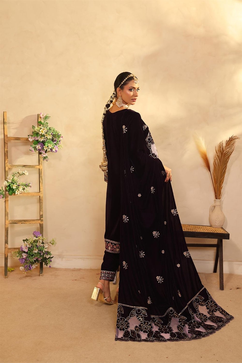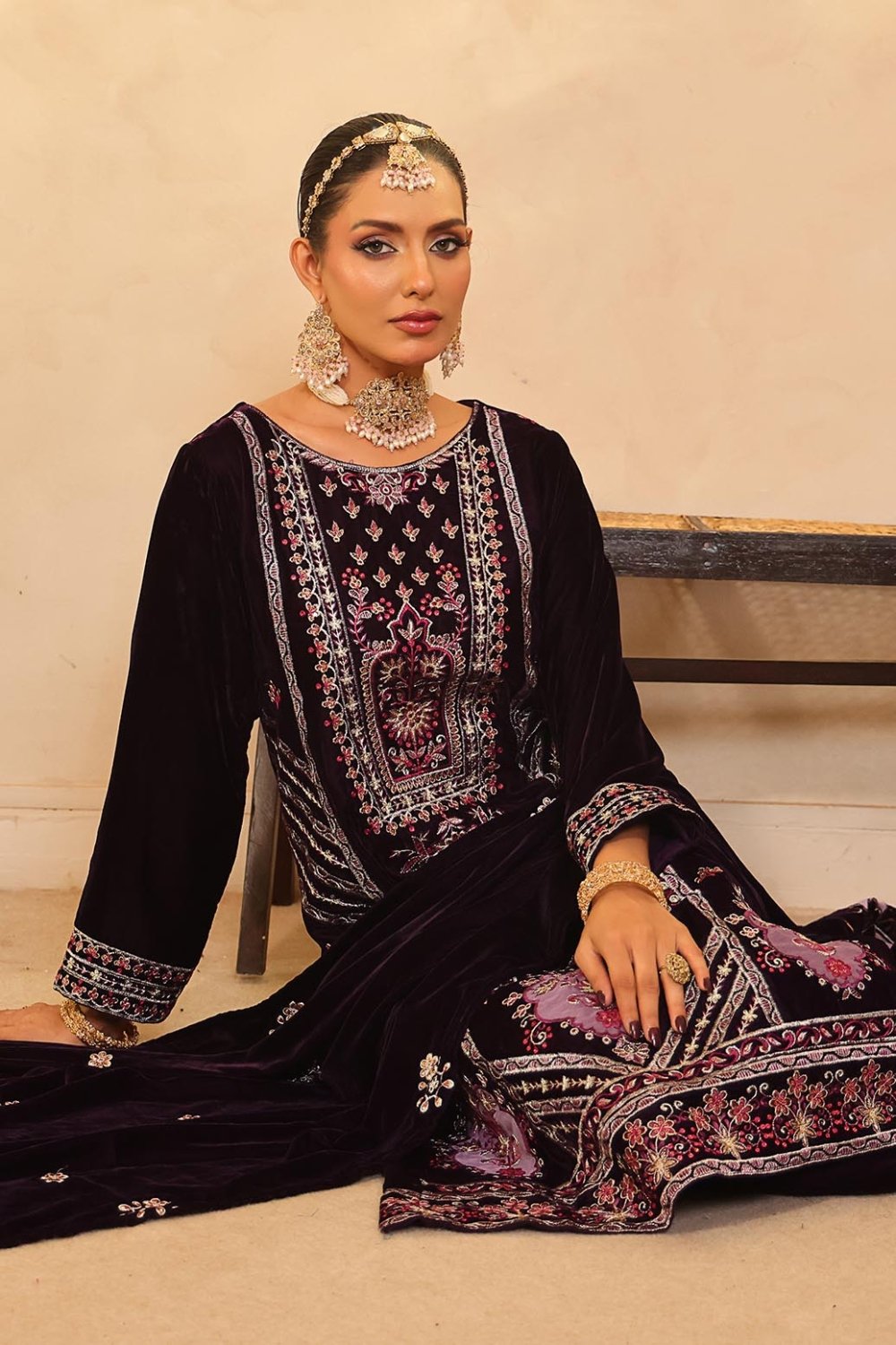 Unstitched 3 Pcs Embroidered Velvet & With Adda Takai Hand Work Shirt