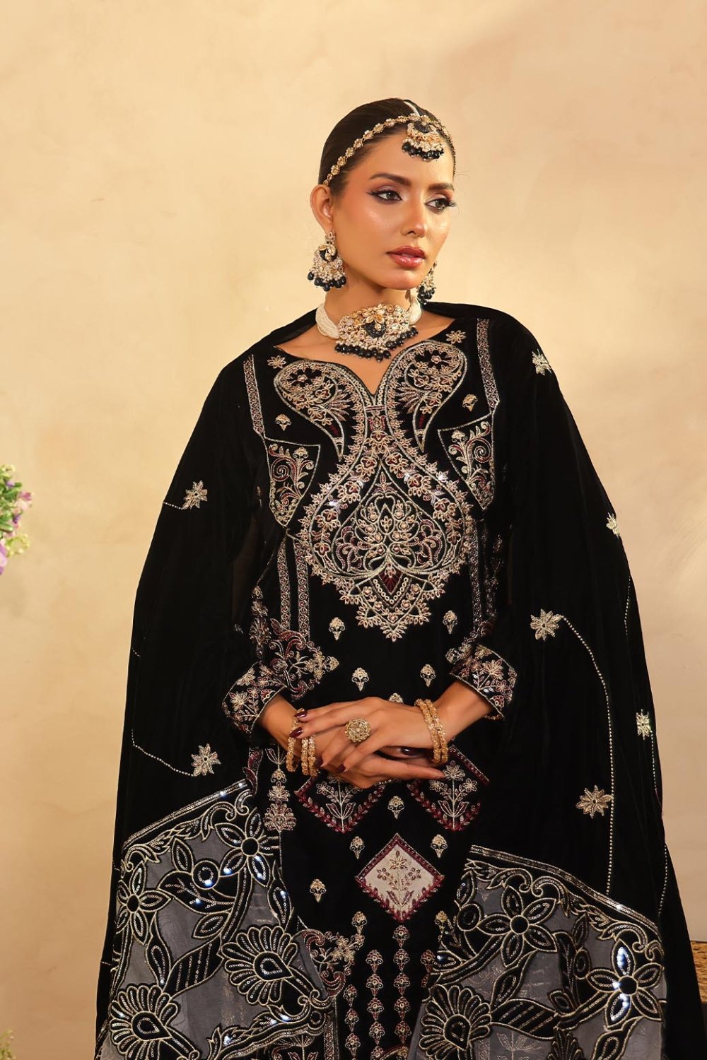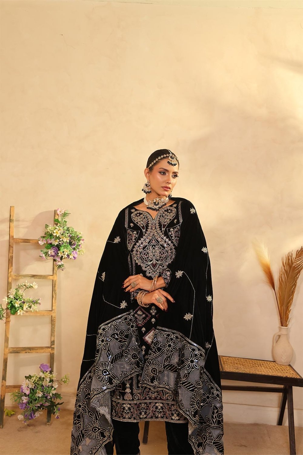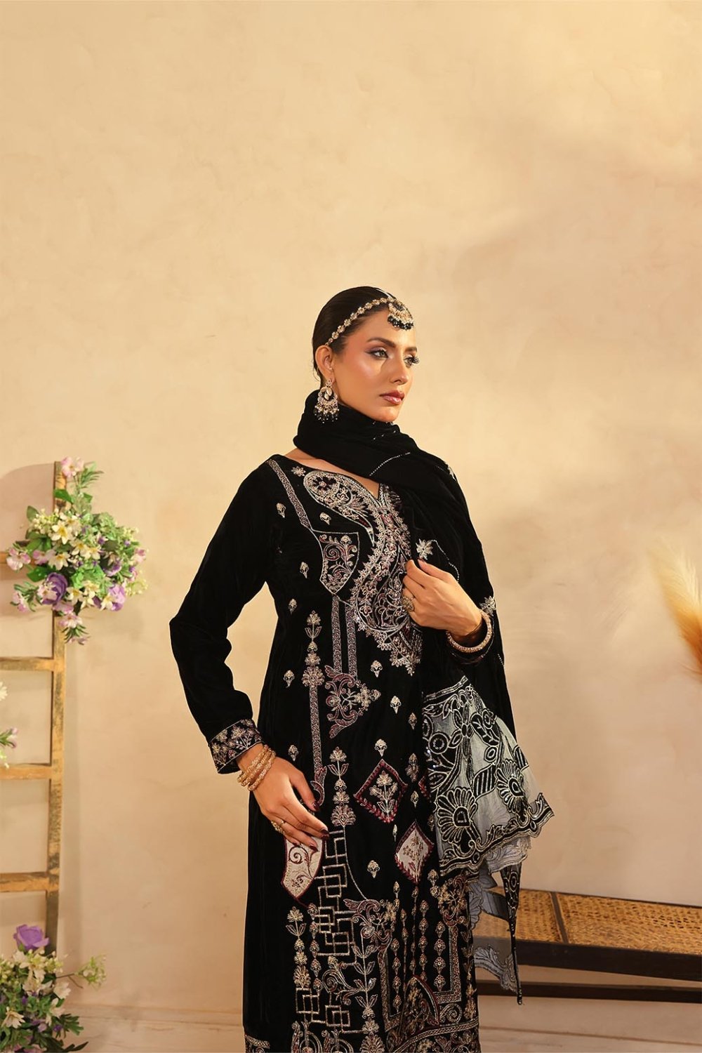 Unstitched 3 Pcs Embroidered Velvet & With Adda Takai Hand Work Shirt